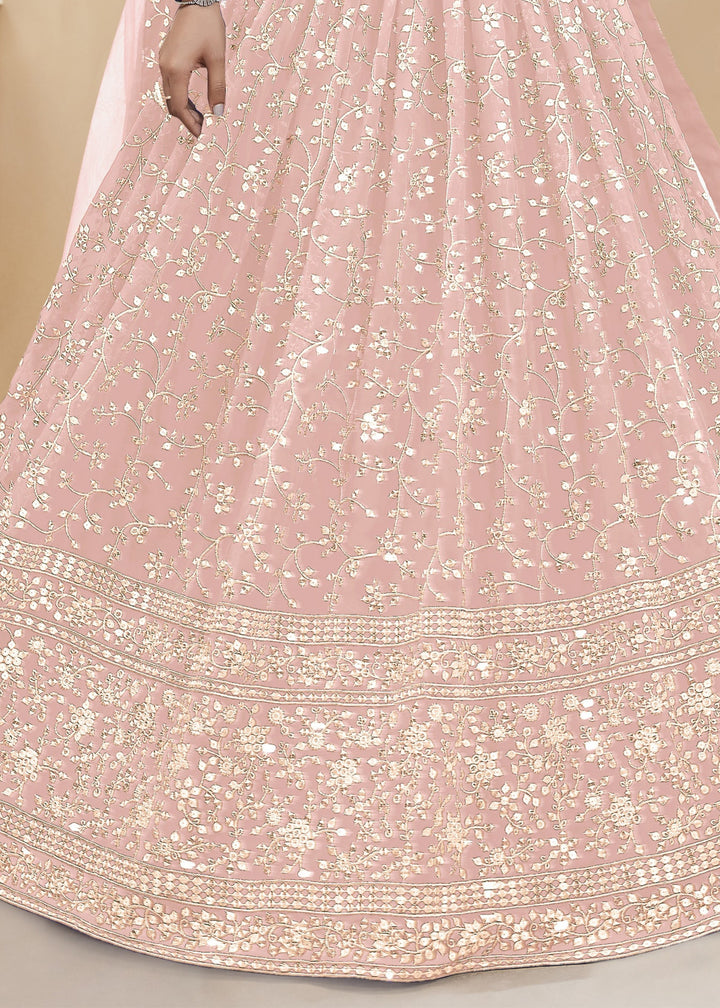 Blush Pink Georgette Lehenga Choli With Sequins Zari Embroidered Work
