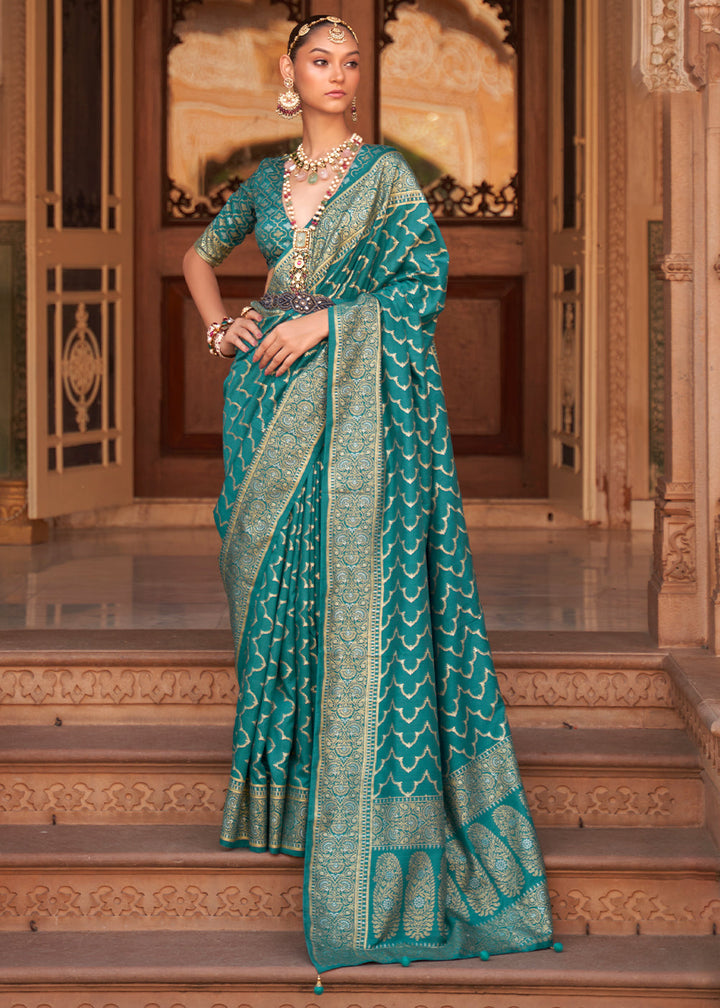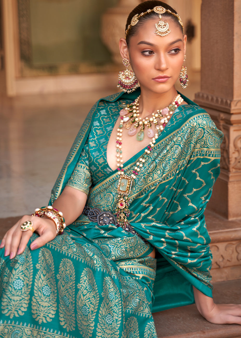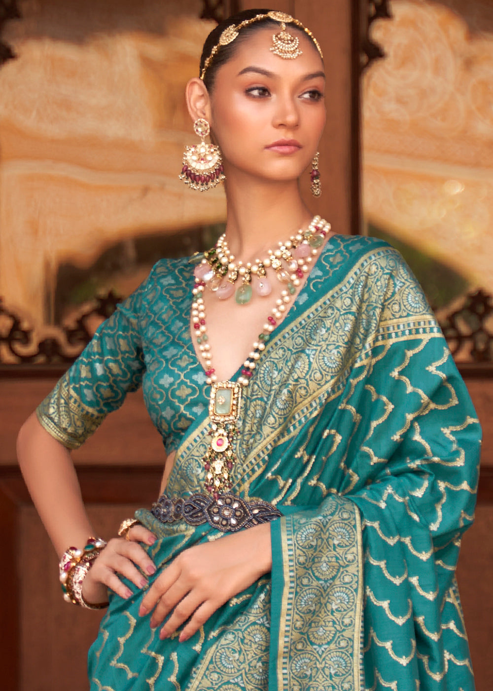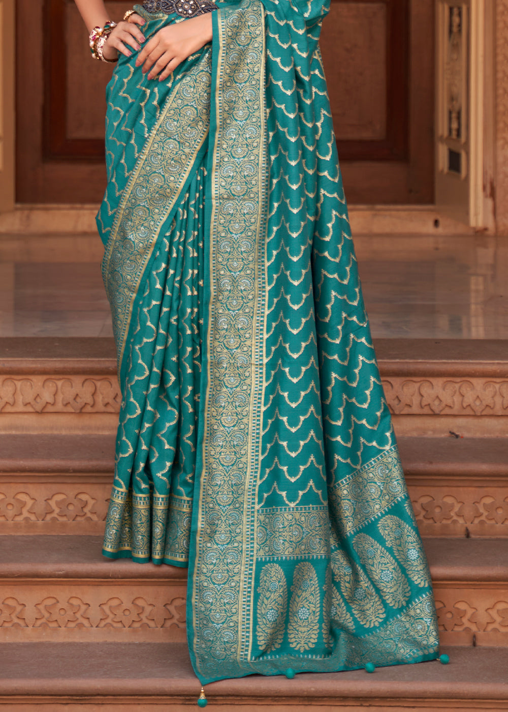 Bondi Teal Blue Zari Woven Soft Banarasi Silk Saree