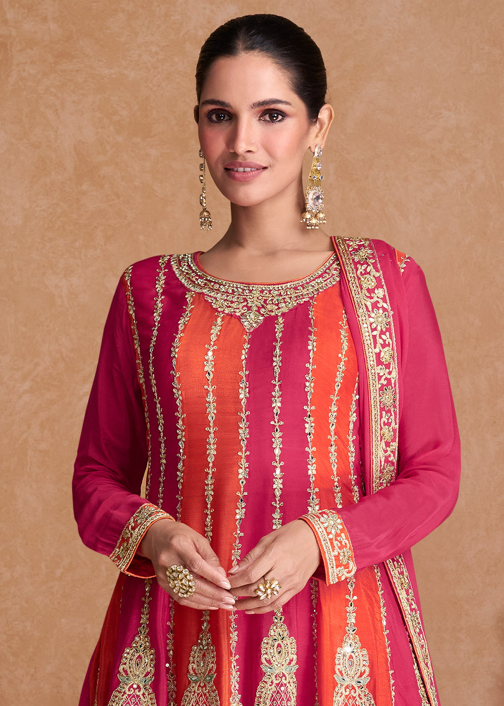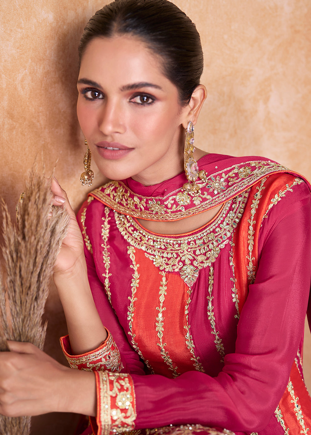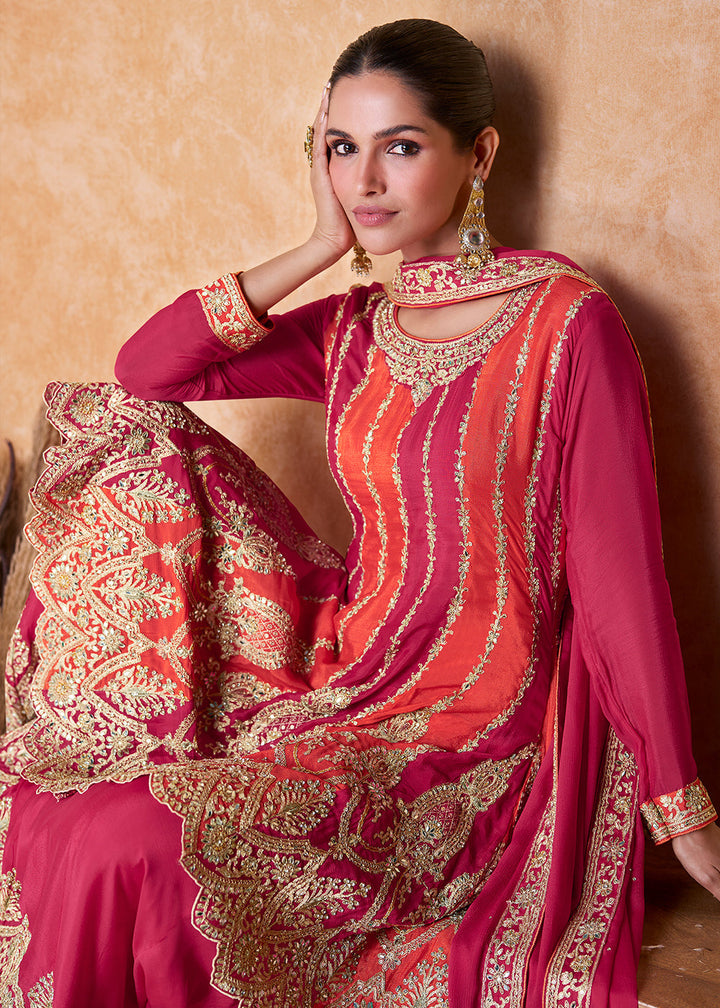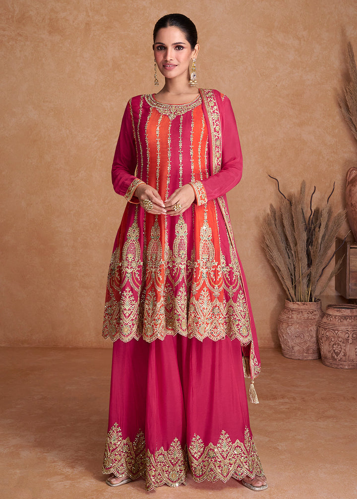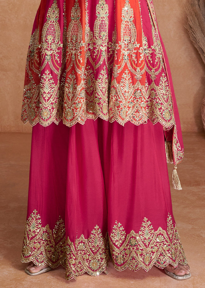 Bright Pink Designer Chinnon Plazzo Suit with Sequins work: Top Pick
