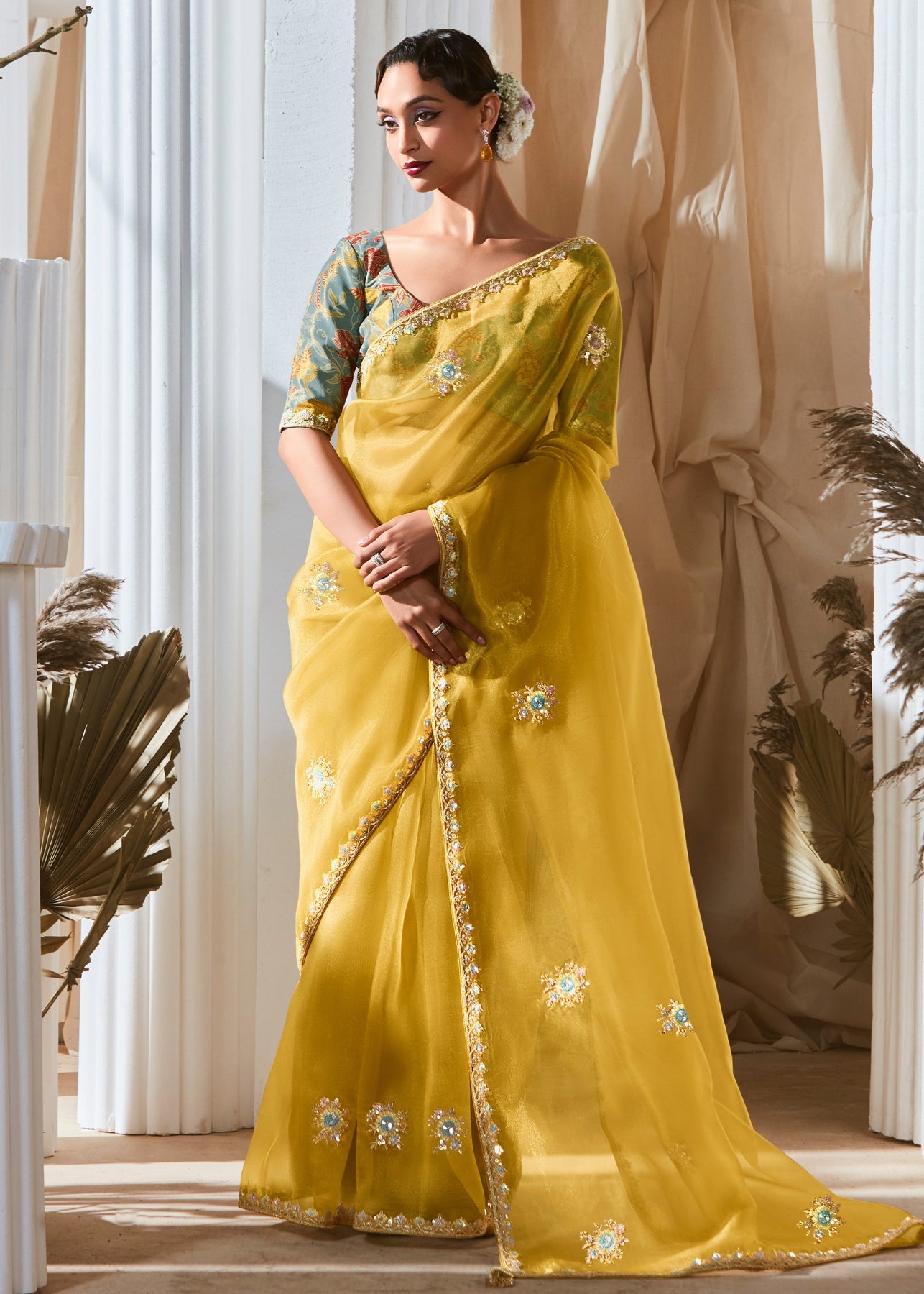 Canary Yellow Fancy Silk Saree With Printed Blouse