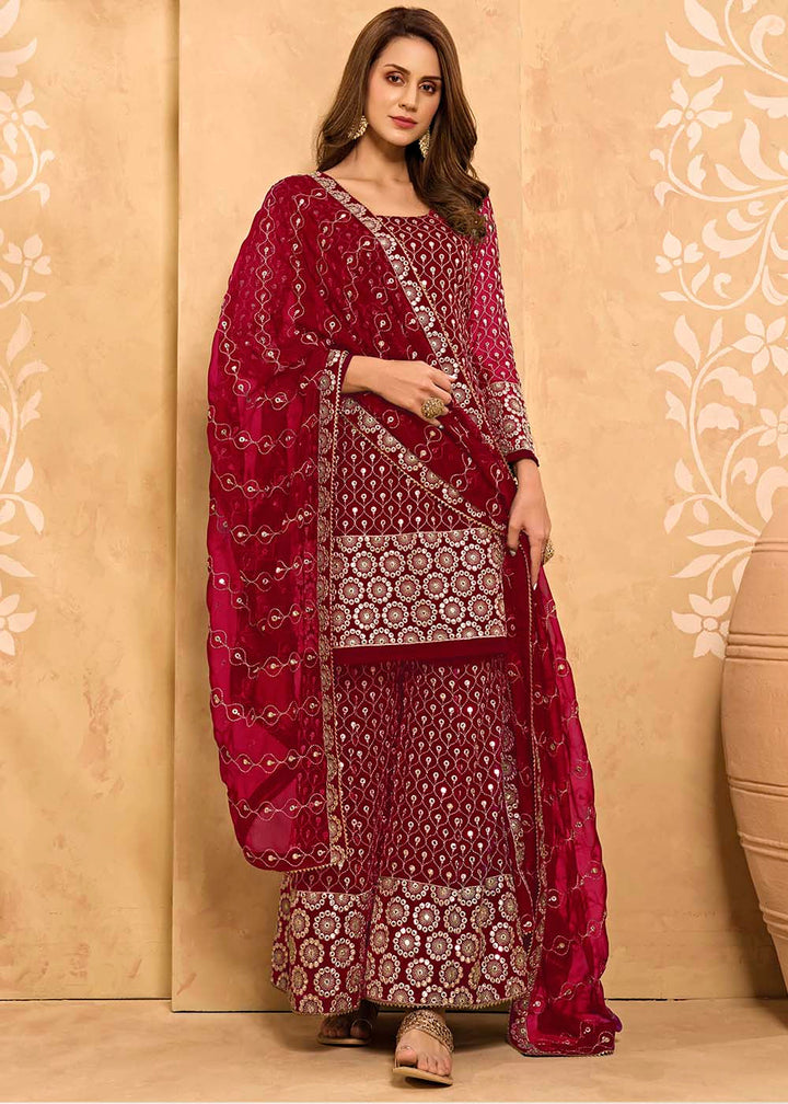 Cerise Pink Georgette Metti with Zari work Sharara Suit