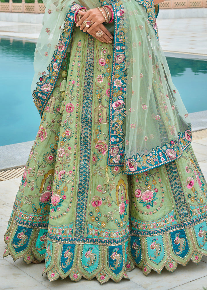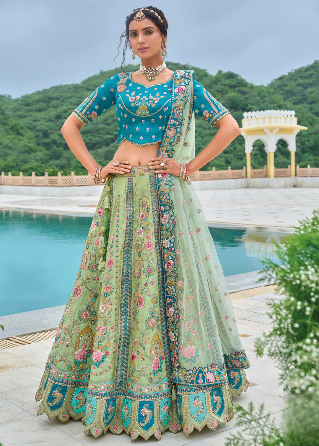 Cerulean Blue and Green Viscose Tissue Lehenga Choli with Embroidery Work