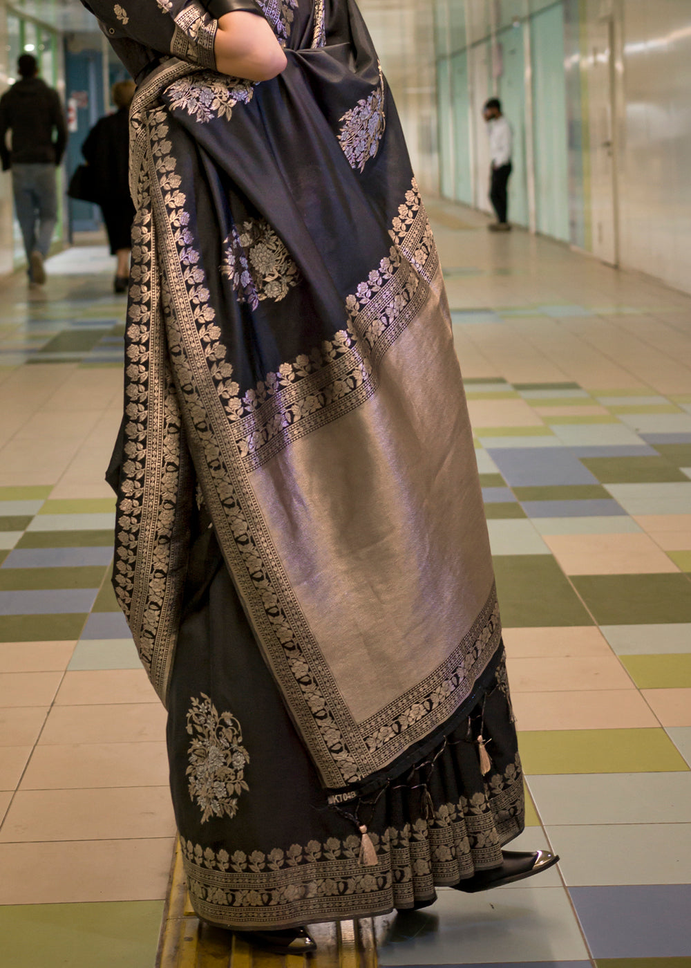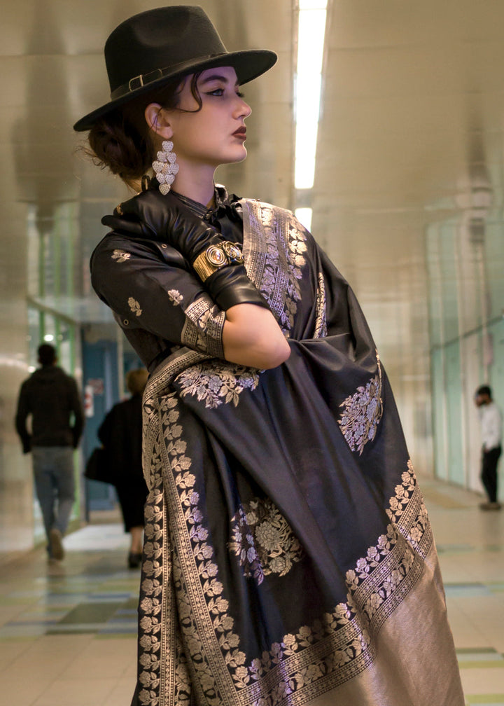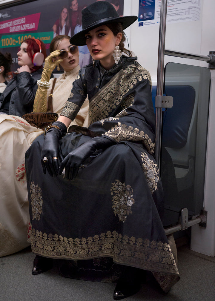 Charcoal Black Handloom Woven Banarasi Silk Saree