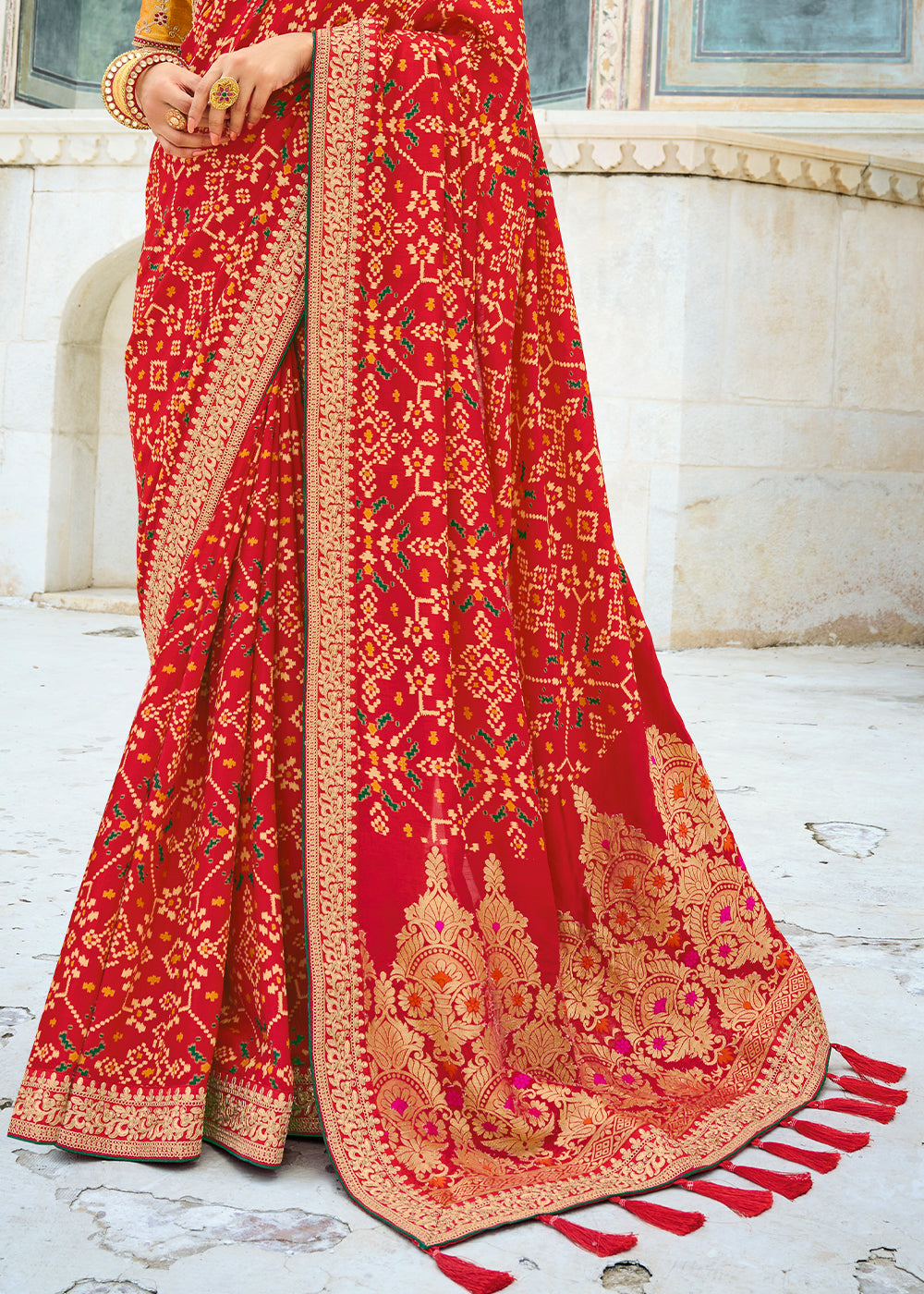 Cherry Red Woven Dola Silk Saree with Embroidered Blouse