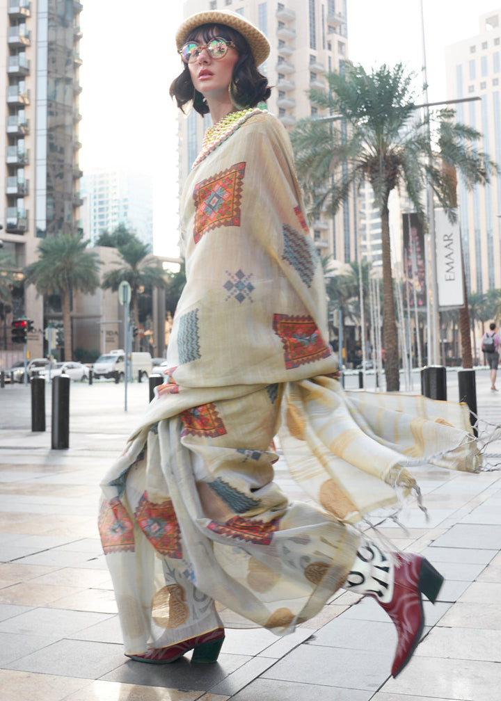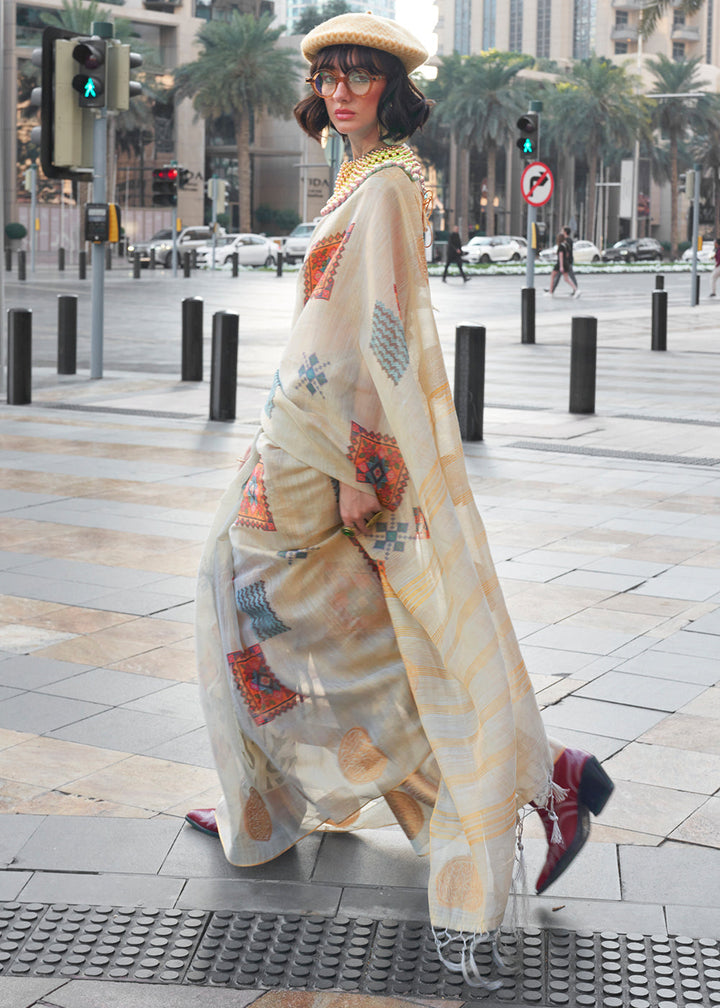 Concrete Grey Printed Handloom Zari Tissue Saree