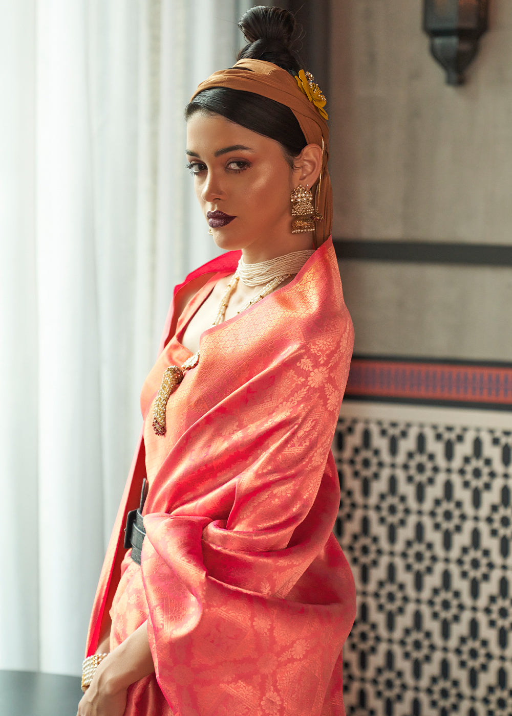Congo Pink Two Tone Handloom Weaving Banarasi Silk Saree