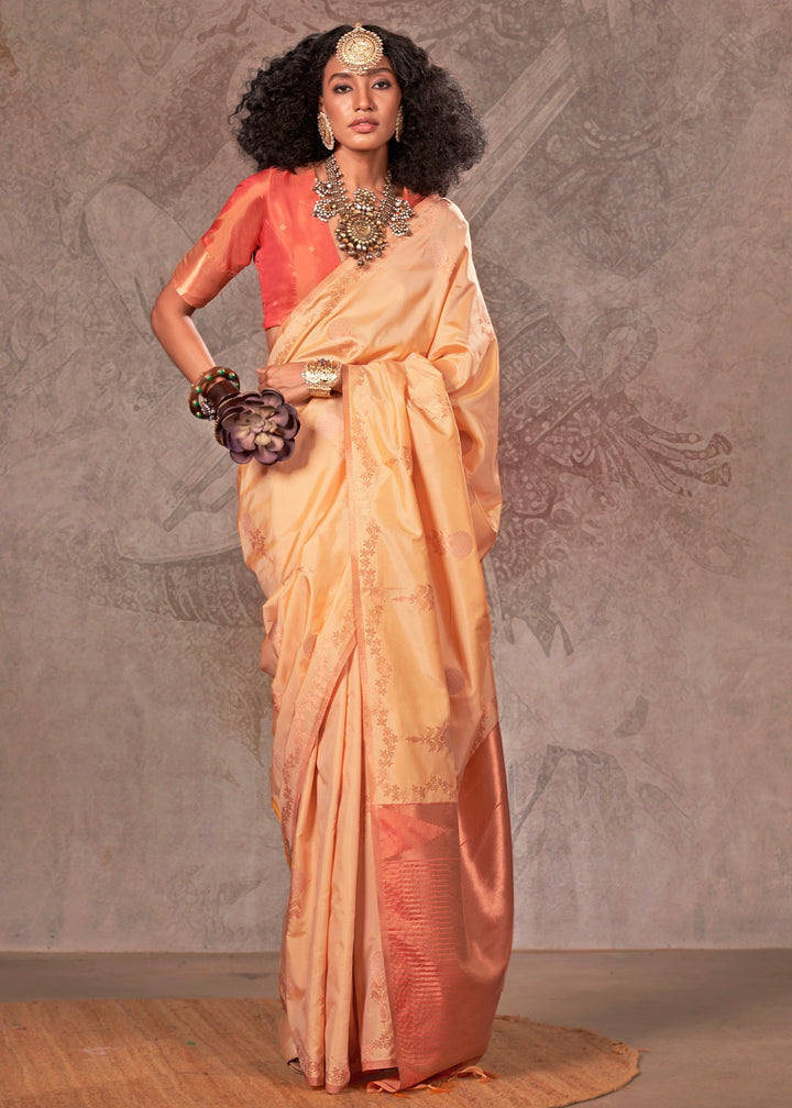 Coral Orange Two Tone Handloom Weaving Silk Saree with Contrast Pallu