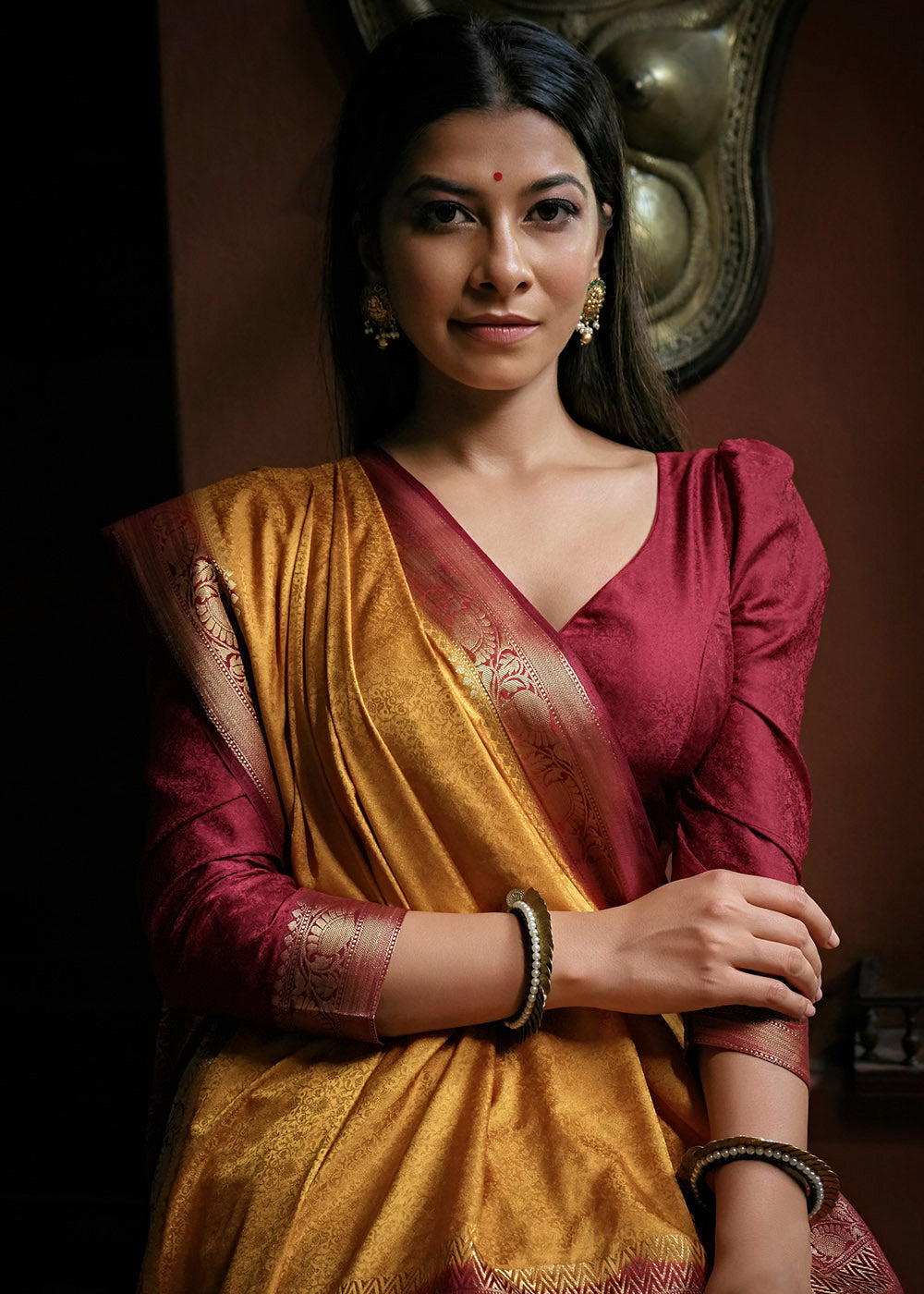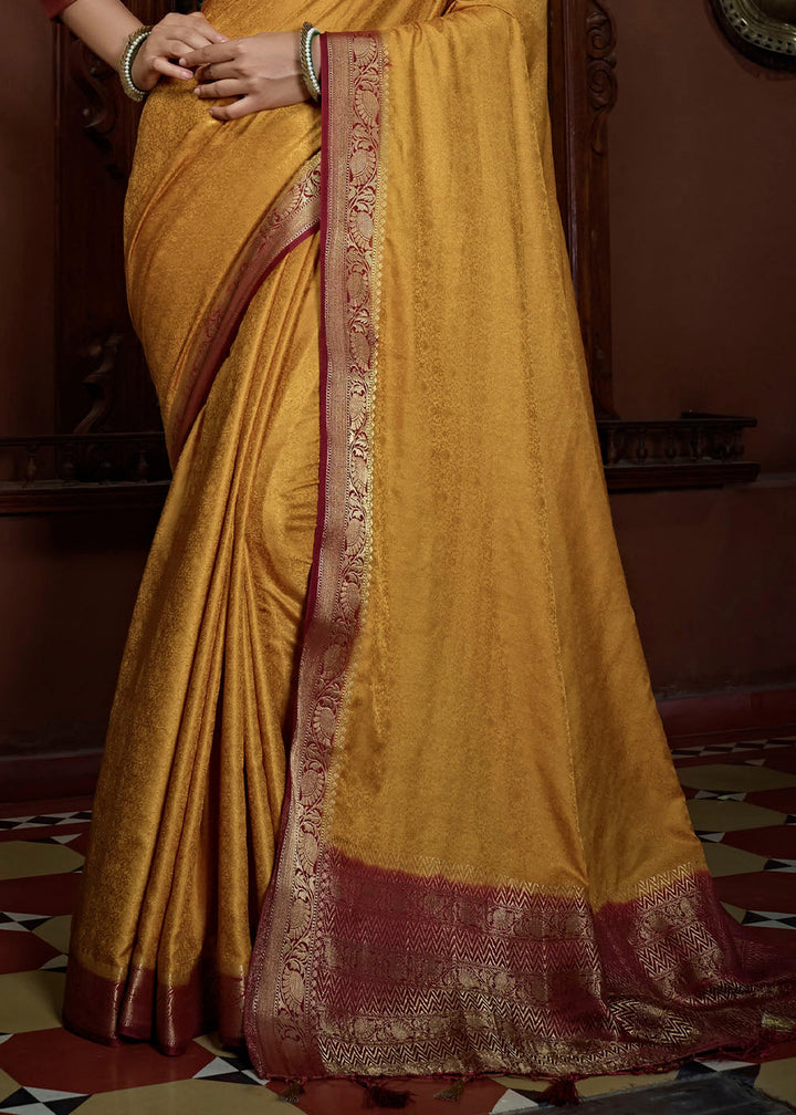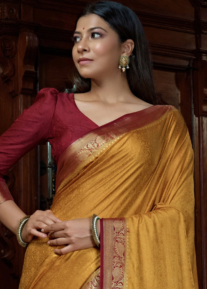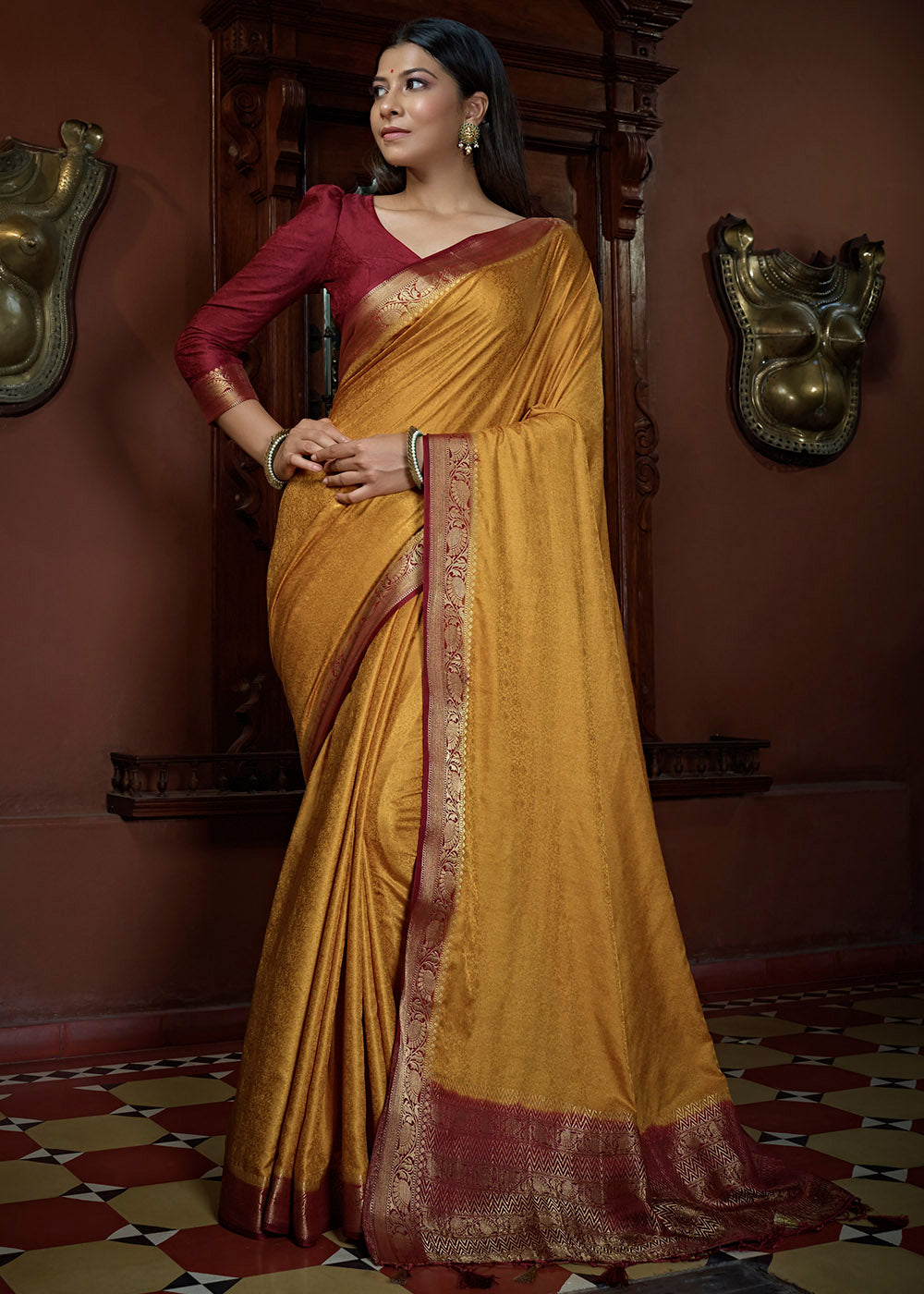 Dandelion Yellow Woven Designer Satin Silk Saree