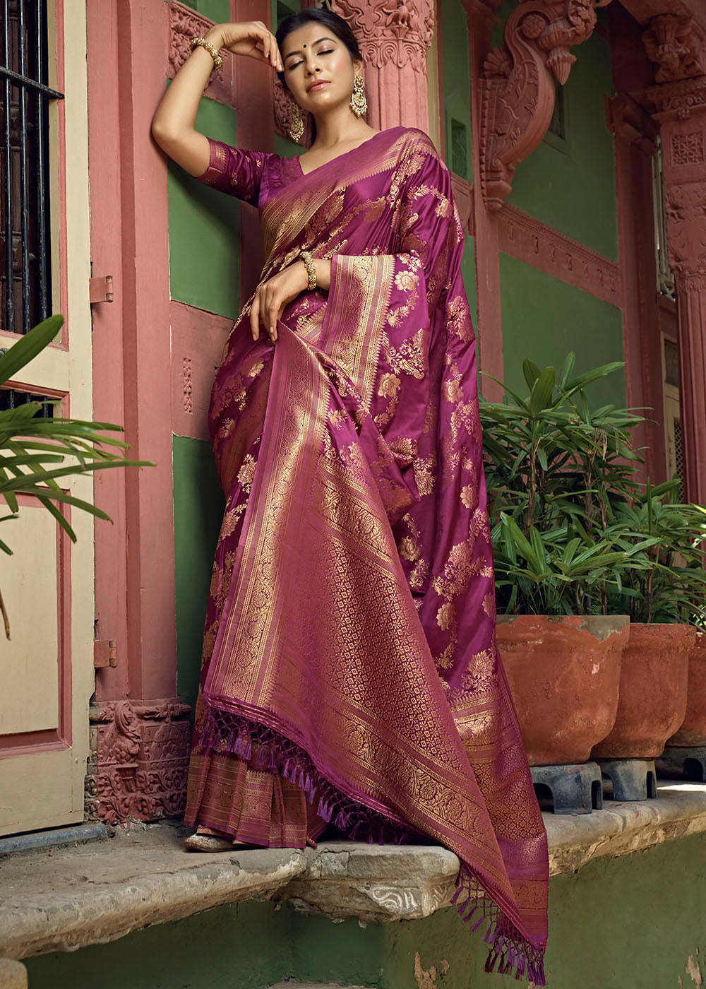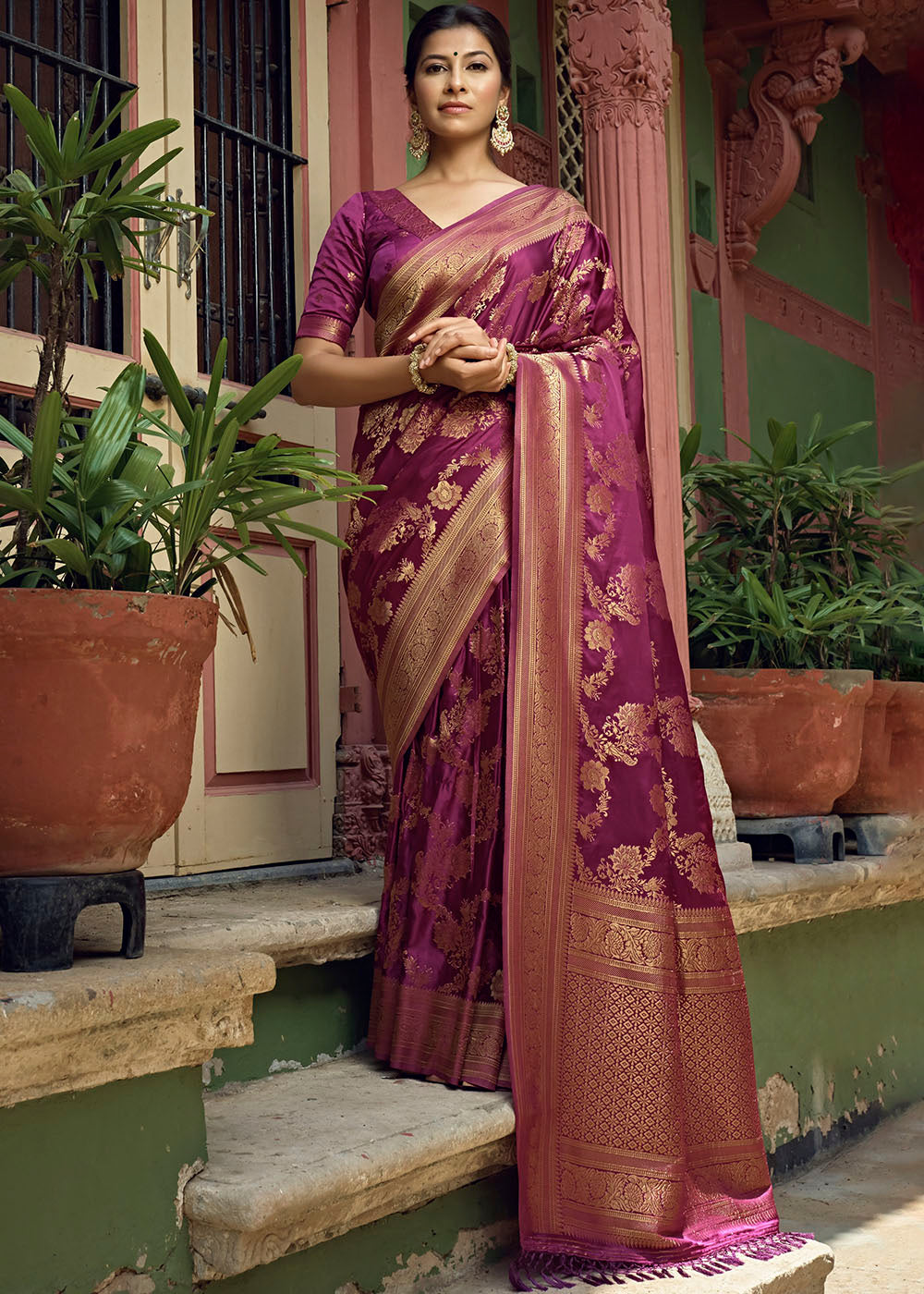 Dark Magenta Purple Woven Designer Satin Silk Saree