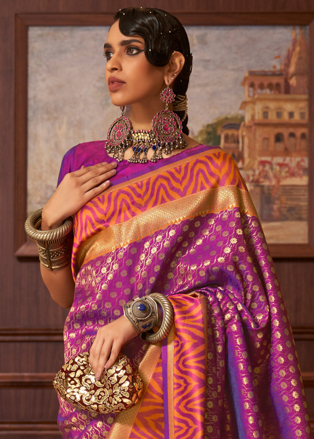 Dark Orchid Purple Handloom Woven Banarasi Silk Saree