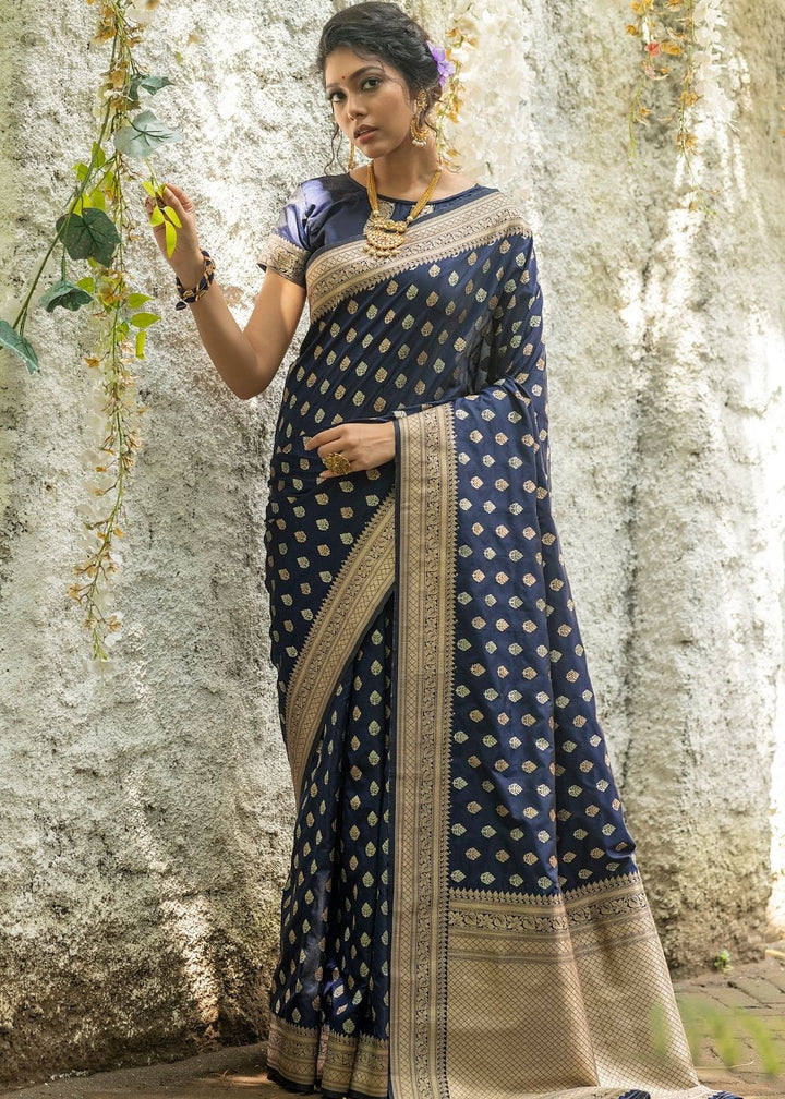 Denim Blue Soft Banarasi Silk Saree with overall Butti