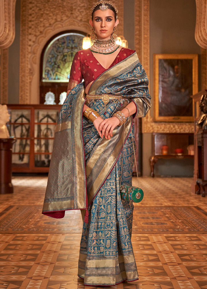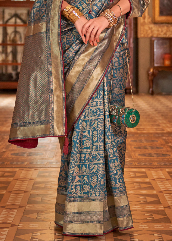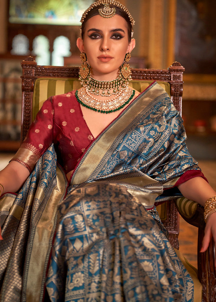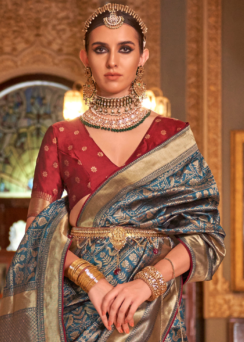 Dodger Blue Zari Woven Banarasi Silk Saree