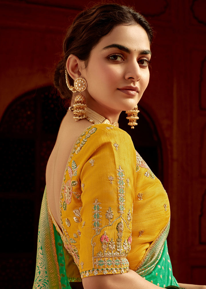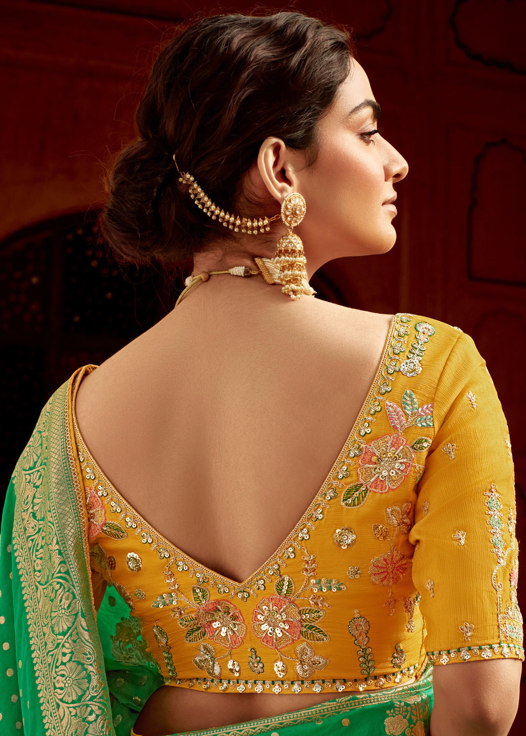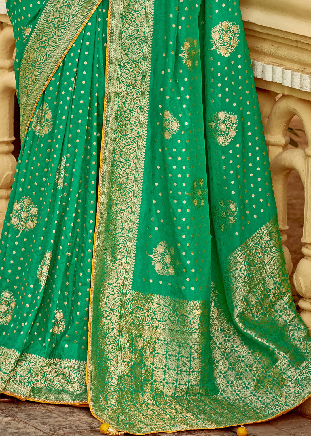 Emerald Green Dola Silk Saree Embellished With Weaving Work And Heavy Embroidered Blouse