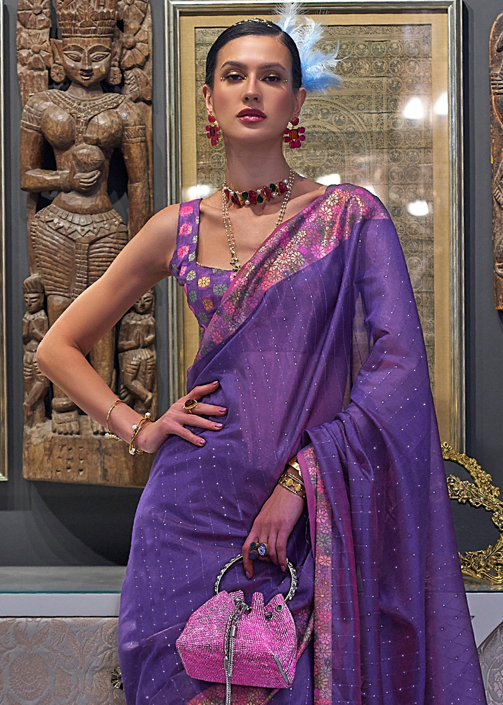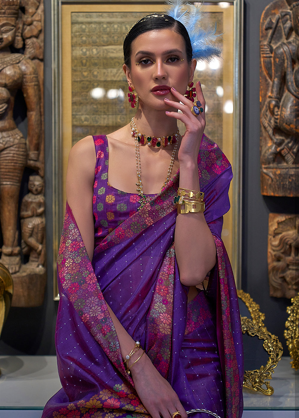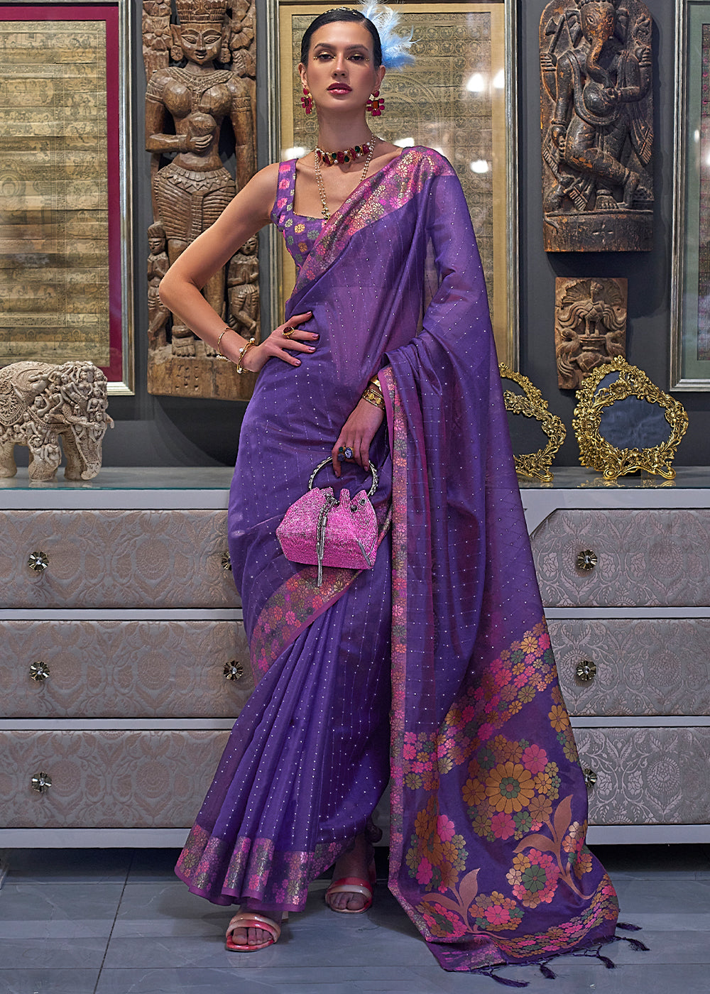 Eminence Purple Handloom Woven Dual Tone Organza Silk Saree with Sequins Work