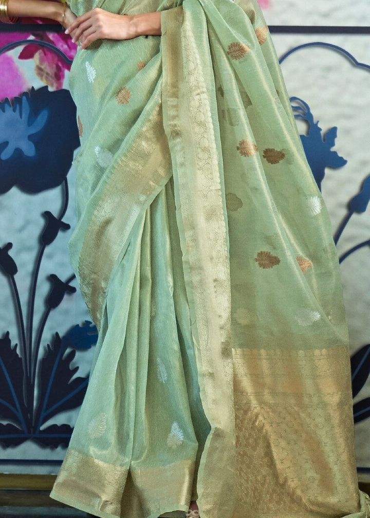 Fern Green Zari Woven Organza Silk Saree