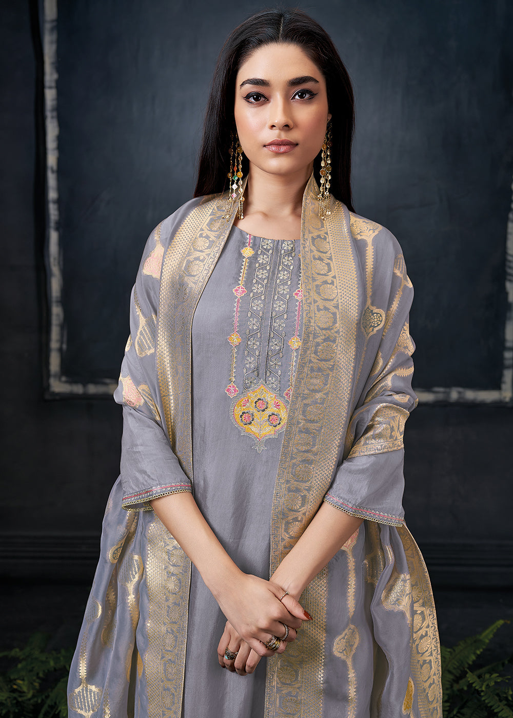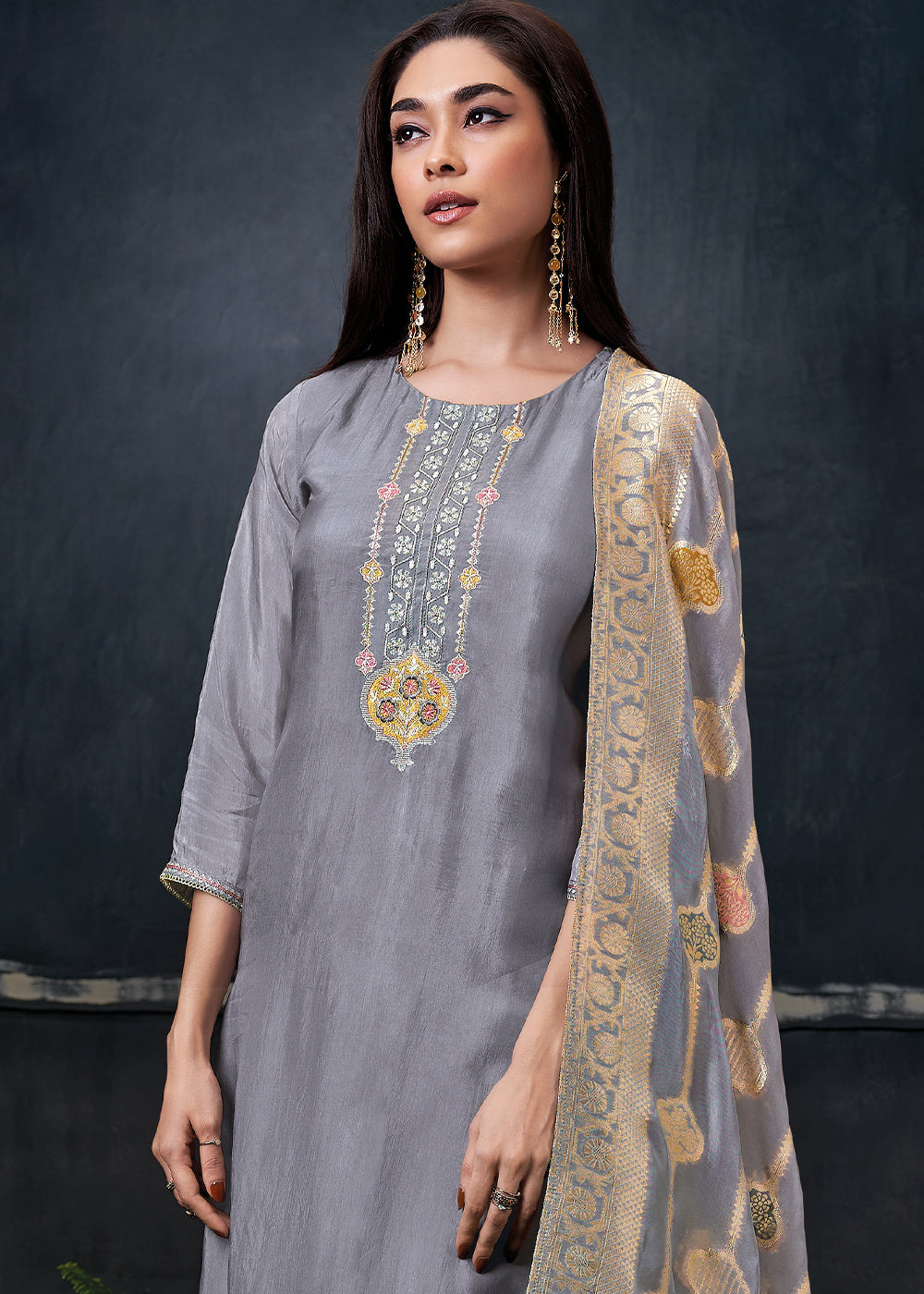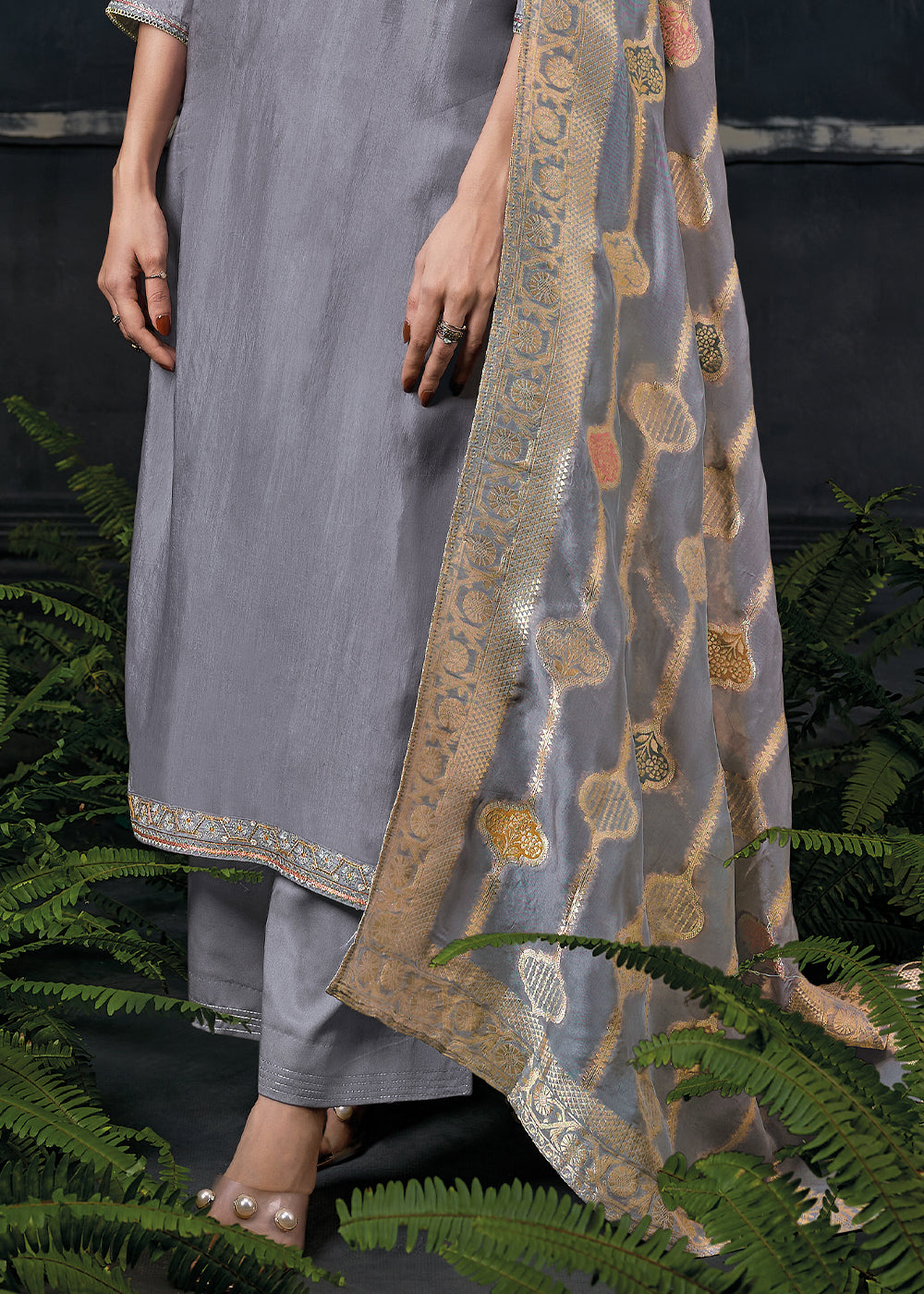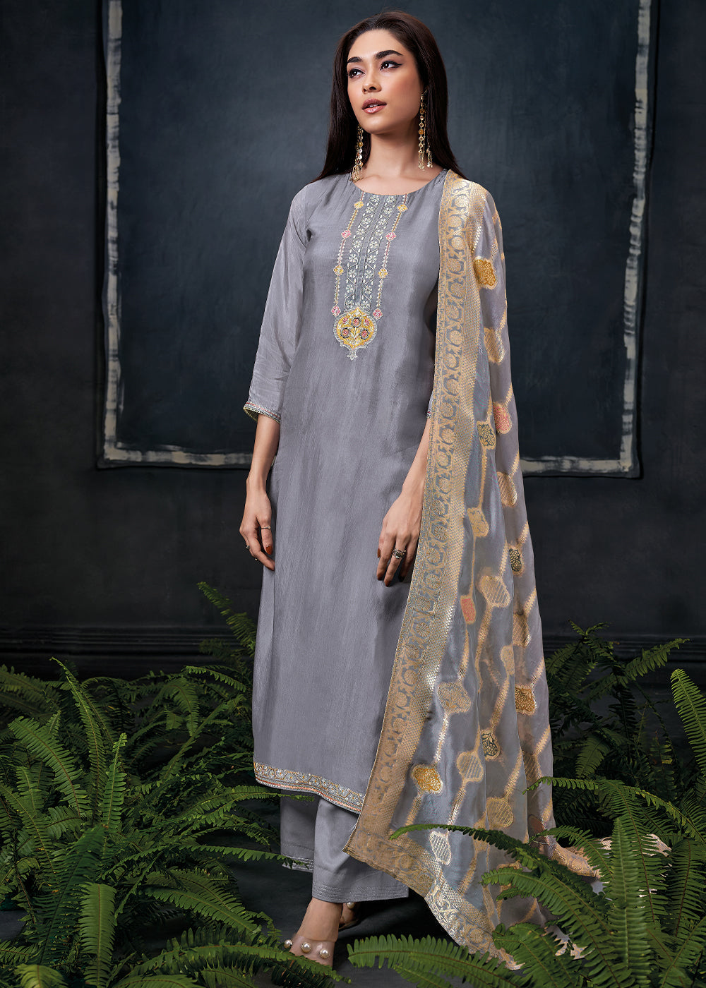 Flint Grey Embroidered Organza Salwar Suit