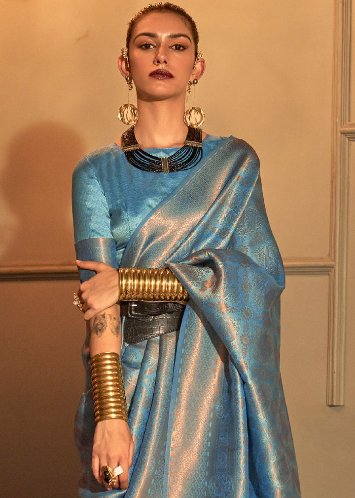 French Blue Two Tone Handloom Weaving Kanjivaram Silk Saree : Top Pick