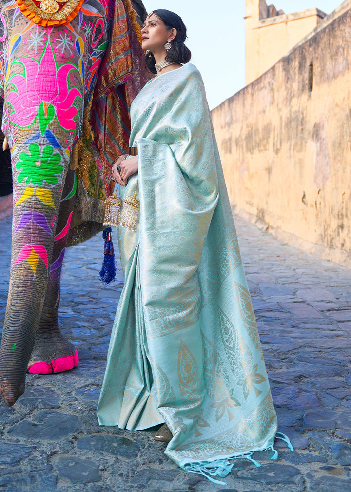 Frost Blue Soft Handloom Weave Kanjivaram Silk Saree