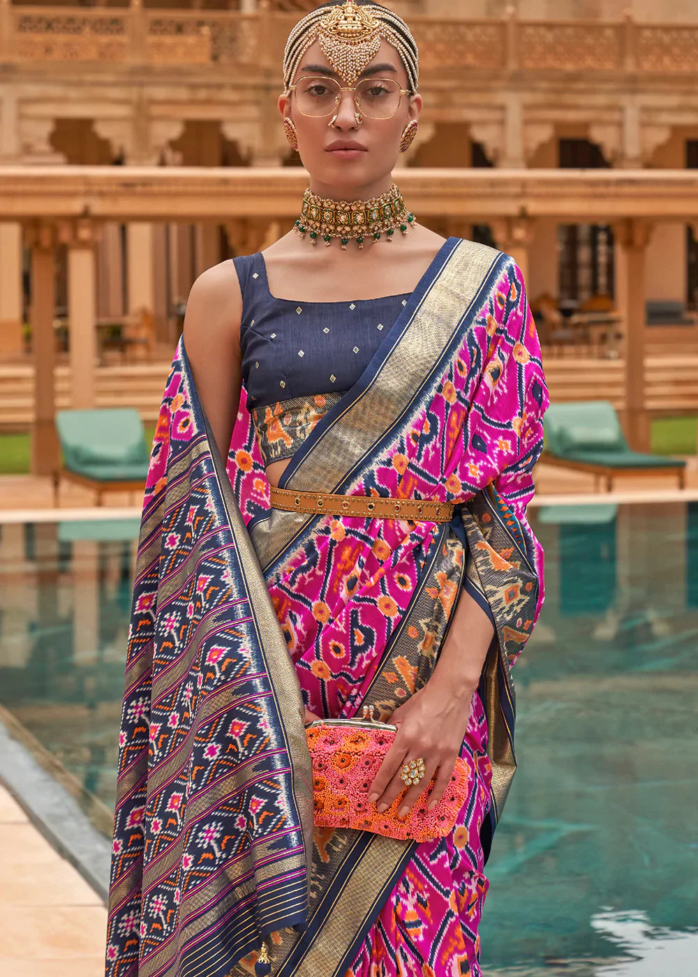 Fuchsia Pink Patola Printed Smooth Silk Saree