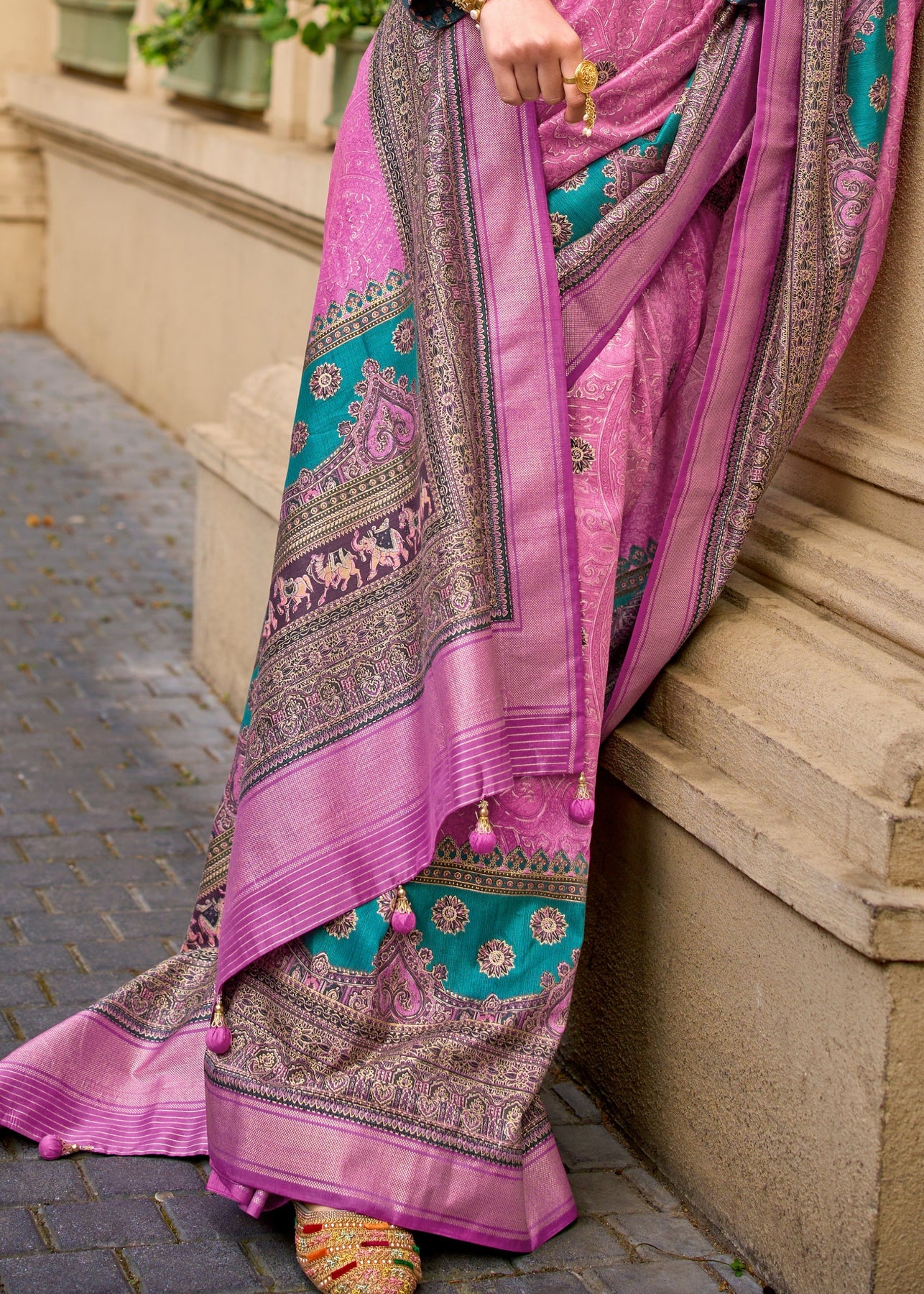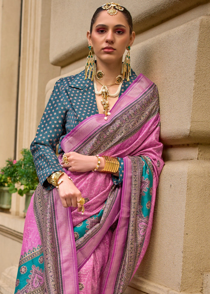 Fuscia Pink Poly Viscose Silk Saree With Foil Print