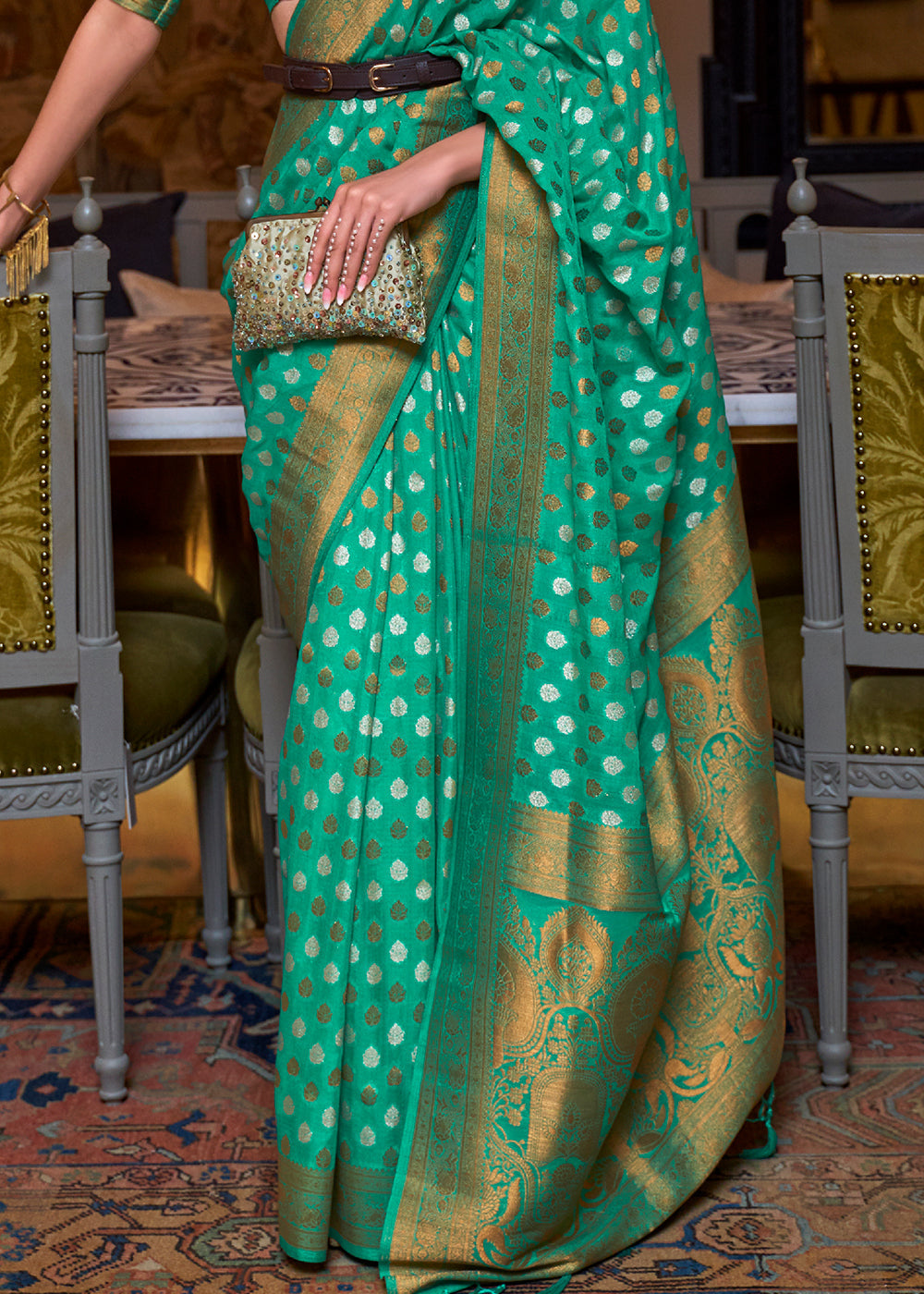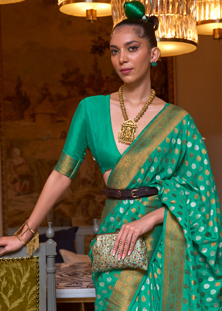 Jade Green Copper Zari Woven Banarasi Khaddi Silk Saree