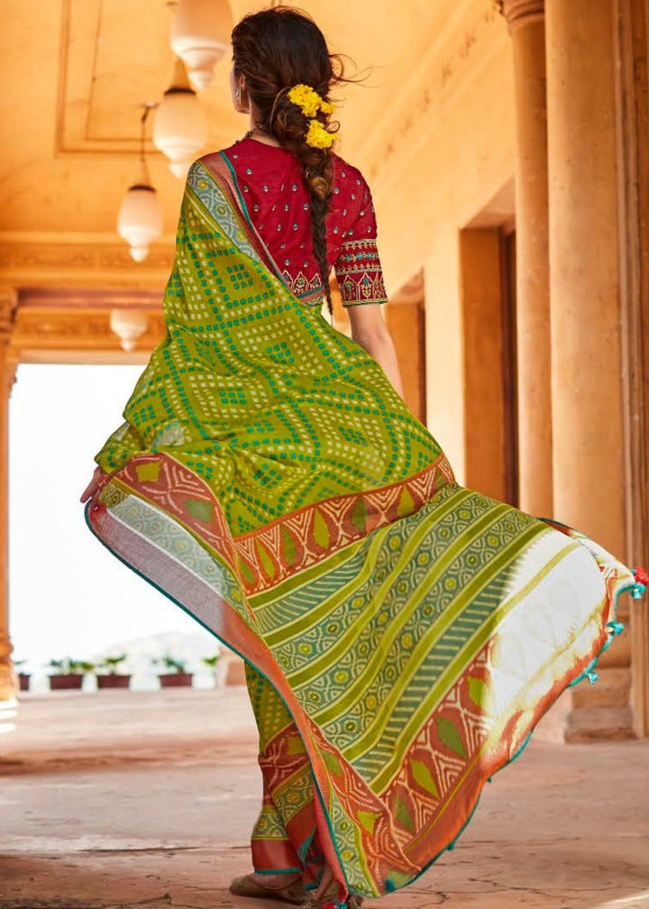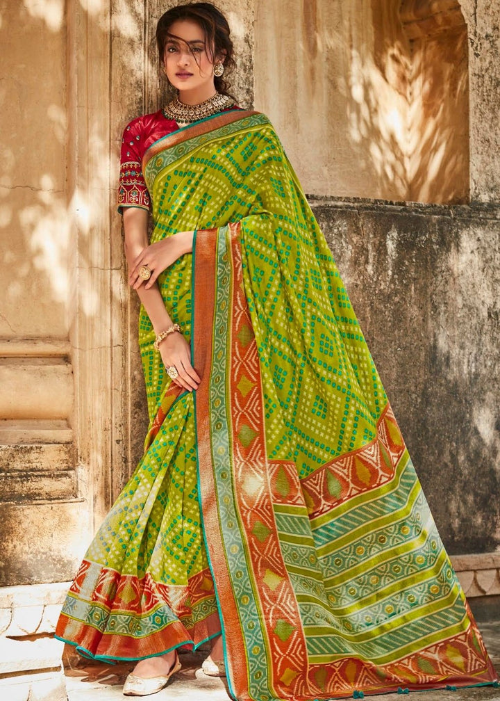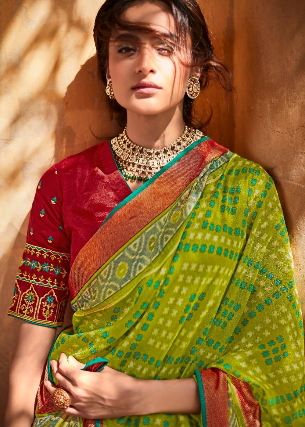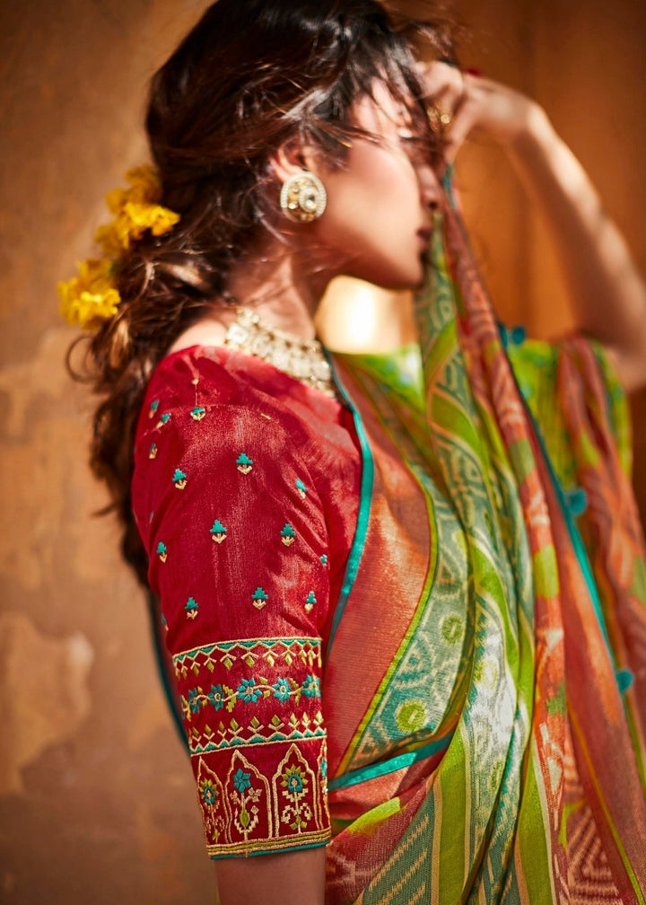 Kelly Green Soft Silk Saree with Embroidered Blouse