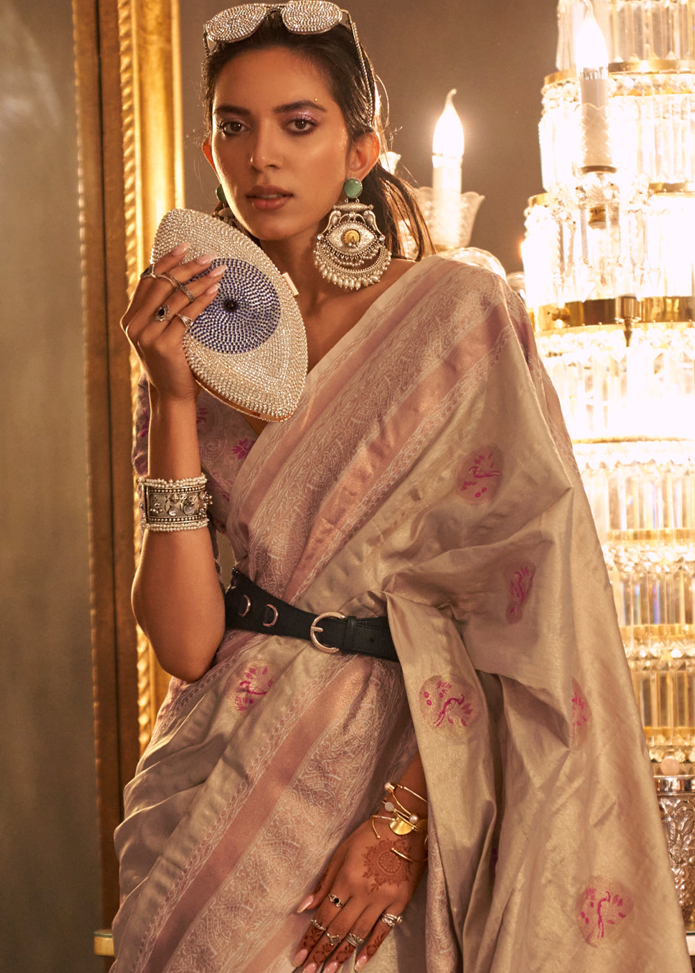 Light Brown Zari Handloom Woven Designer Silk Saree