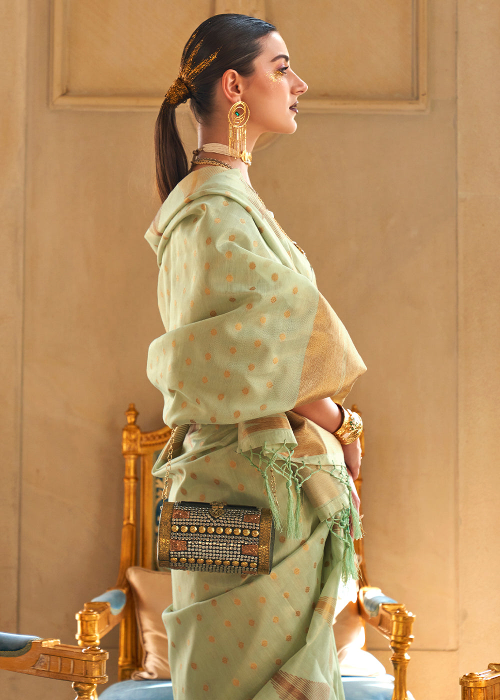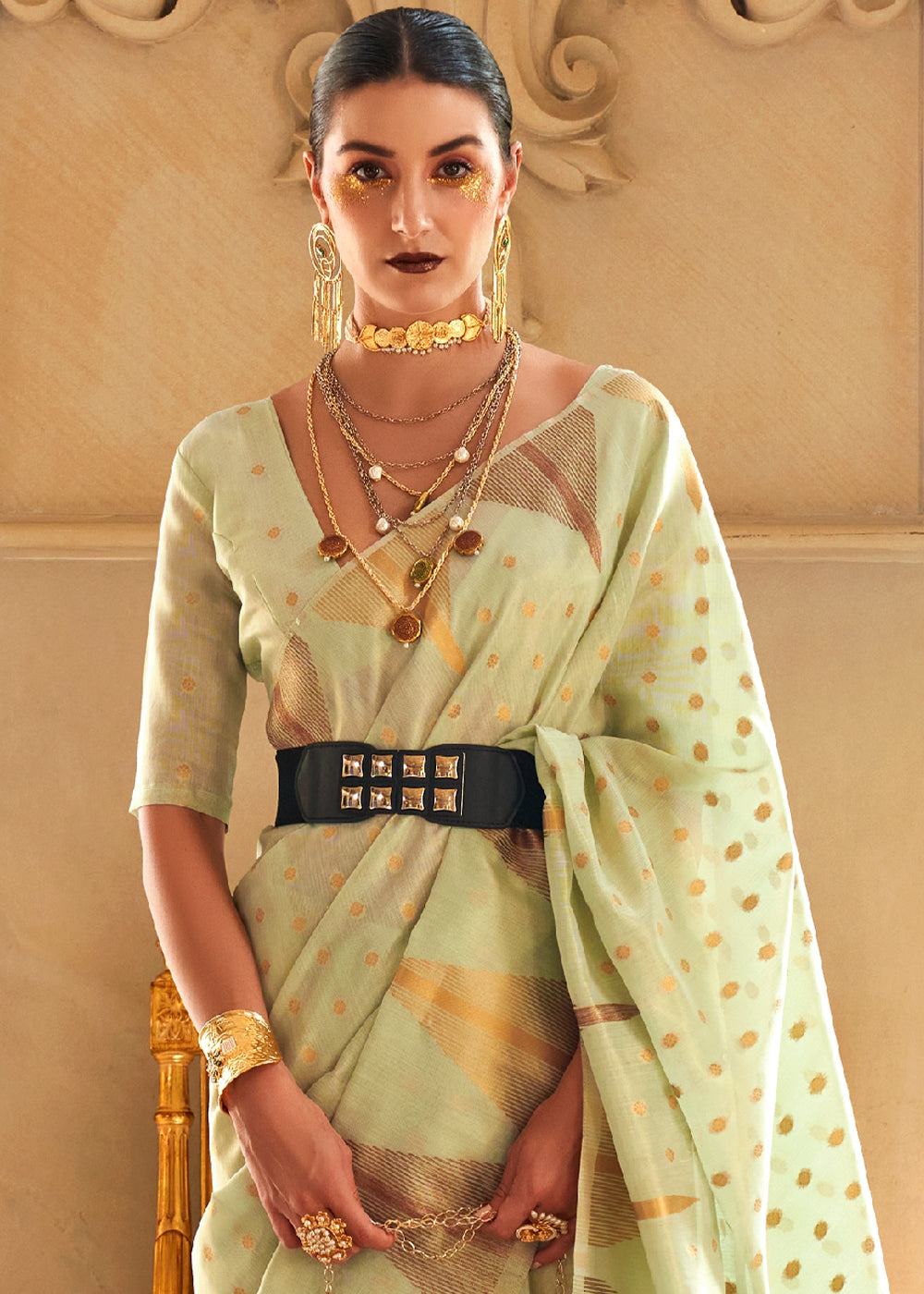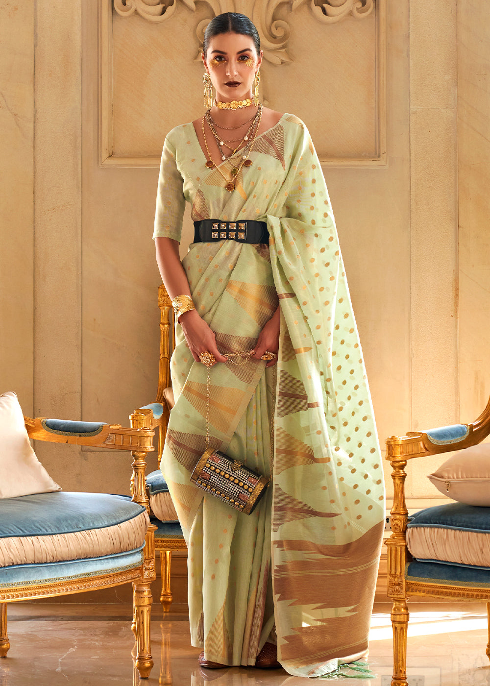 Light Green Zari Handloom Woven Tissue Silk Saree
