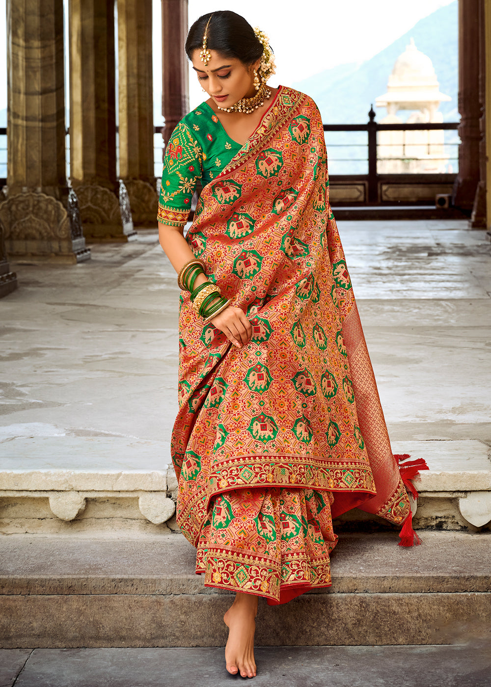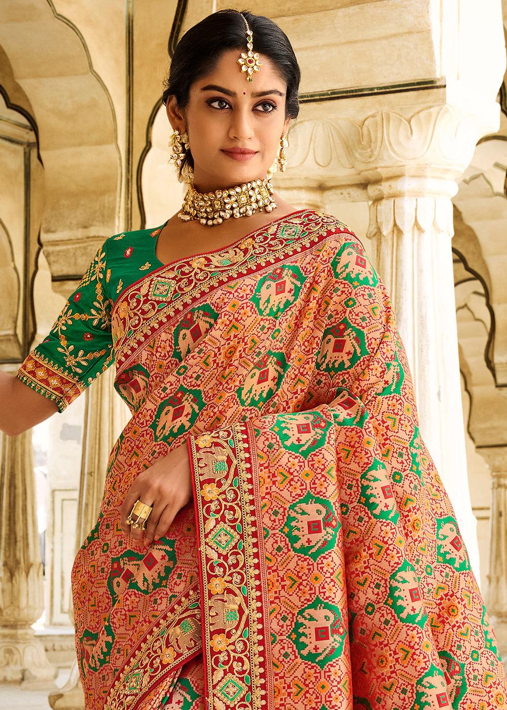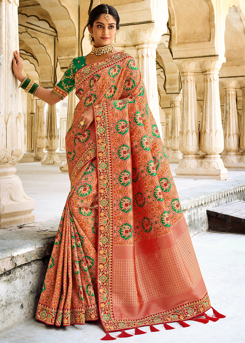 Light Orange Woven Dola Silk Saree with Embroidered Blouse