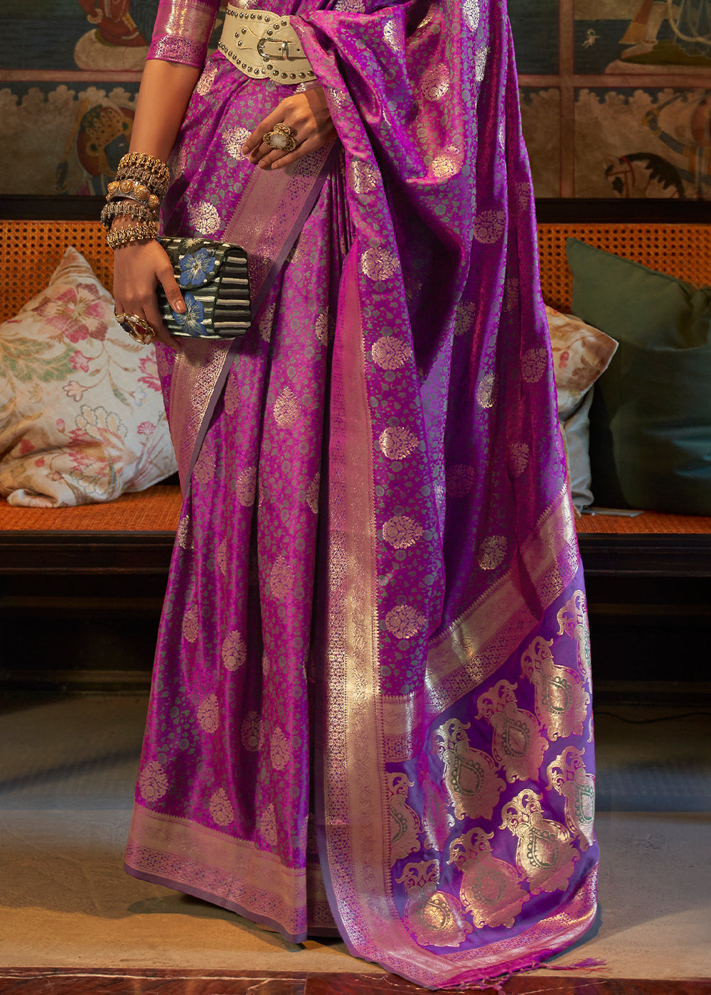Lollipop Purple Tanchoi Handloom Woven Satin Silk Saree