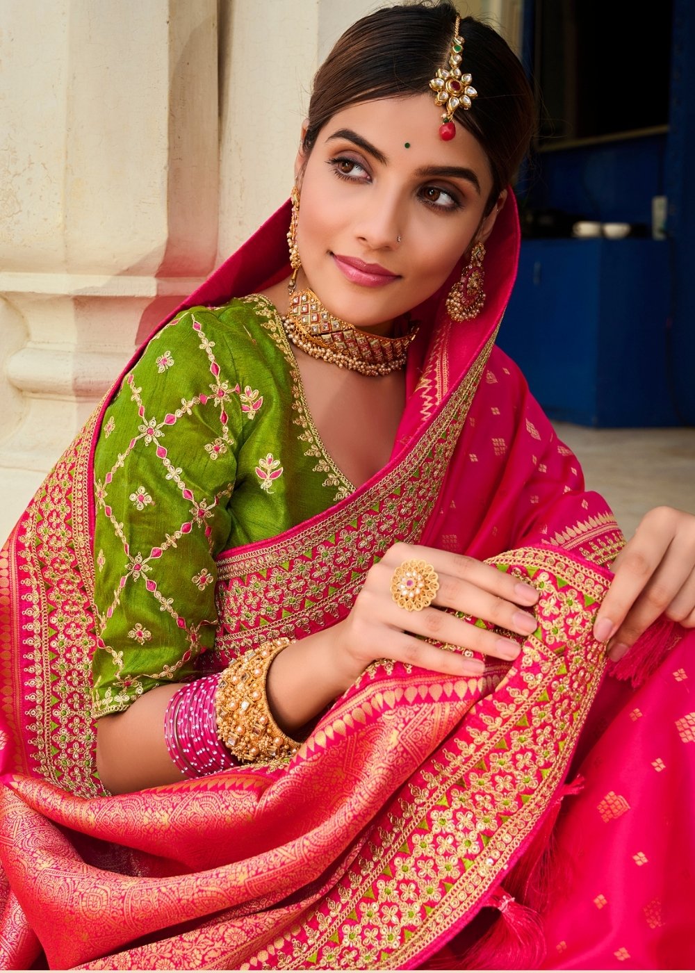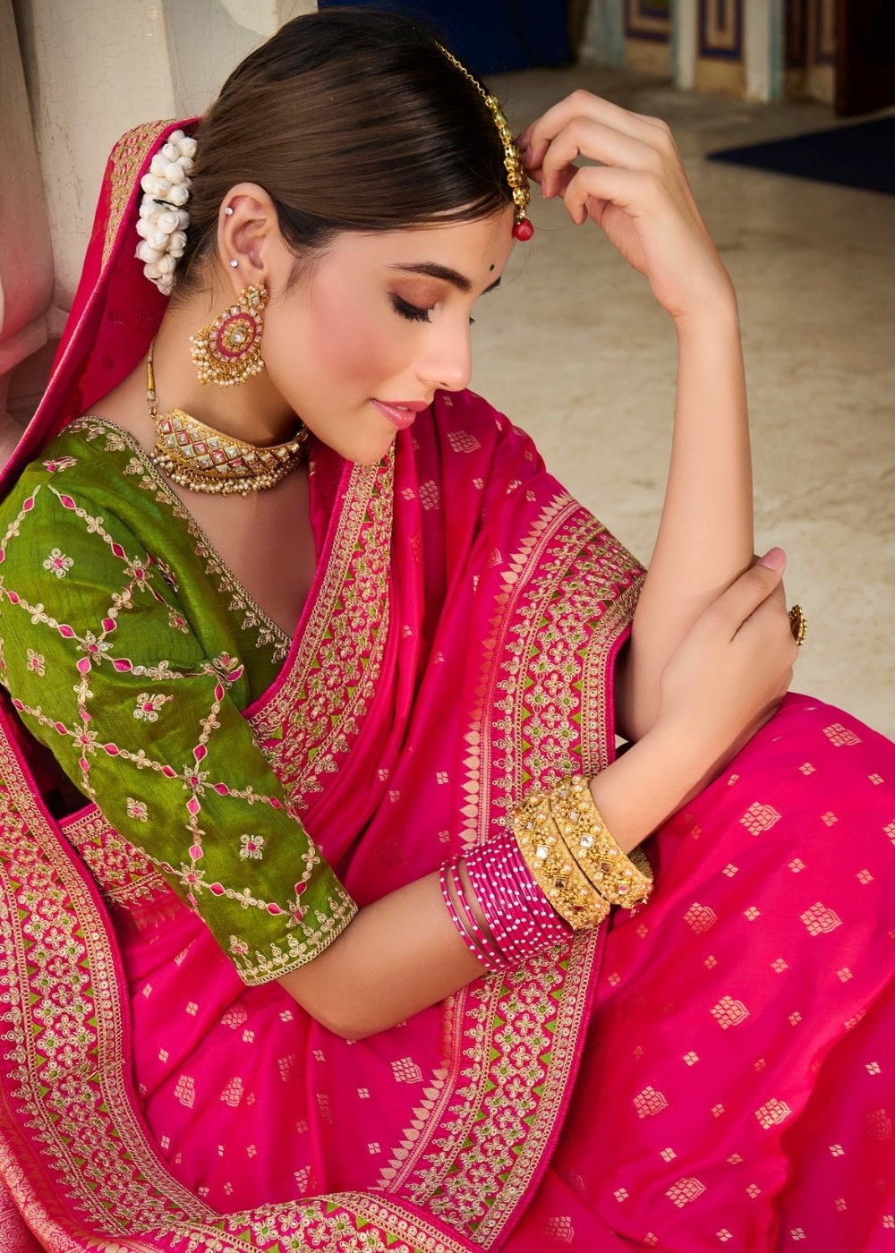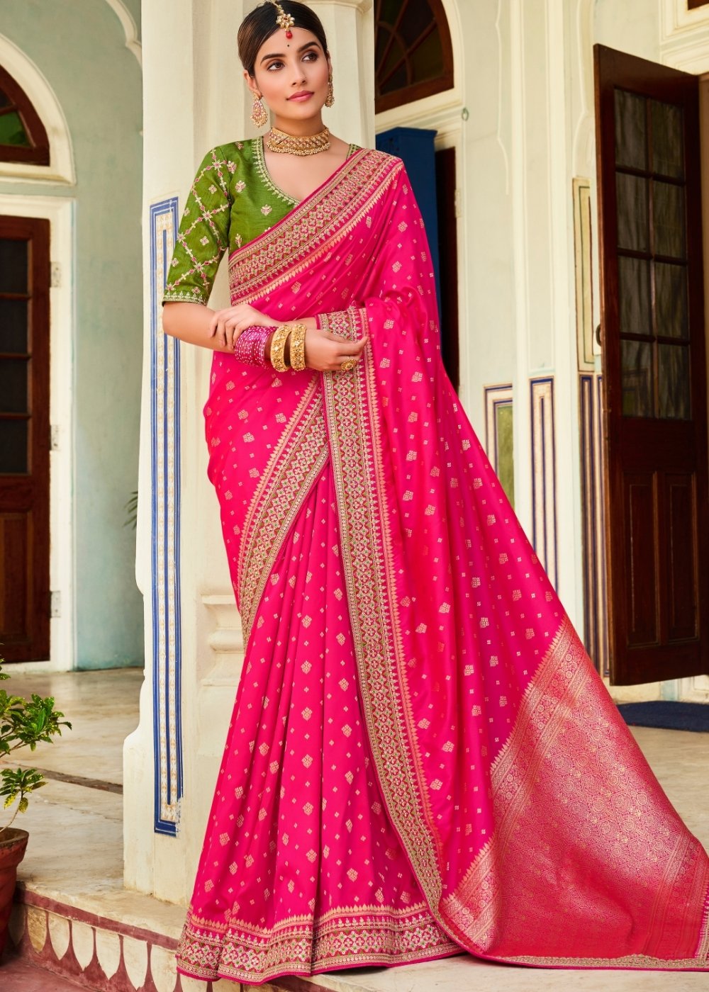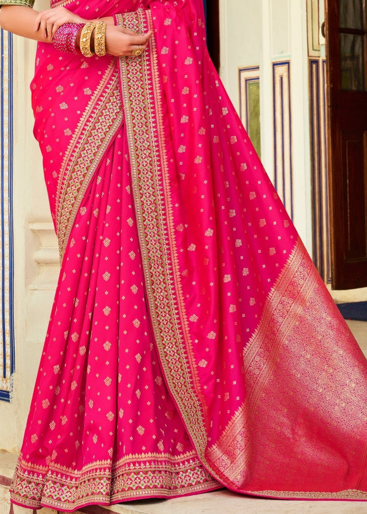 Magenta Pink Woven Banarasi Silk Saree with Embroidered Blouse