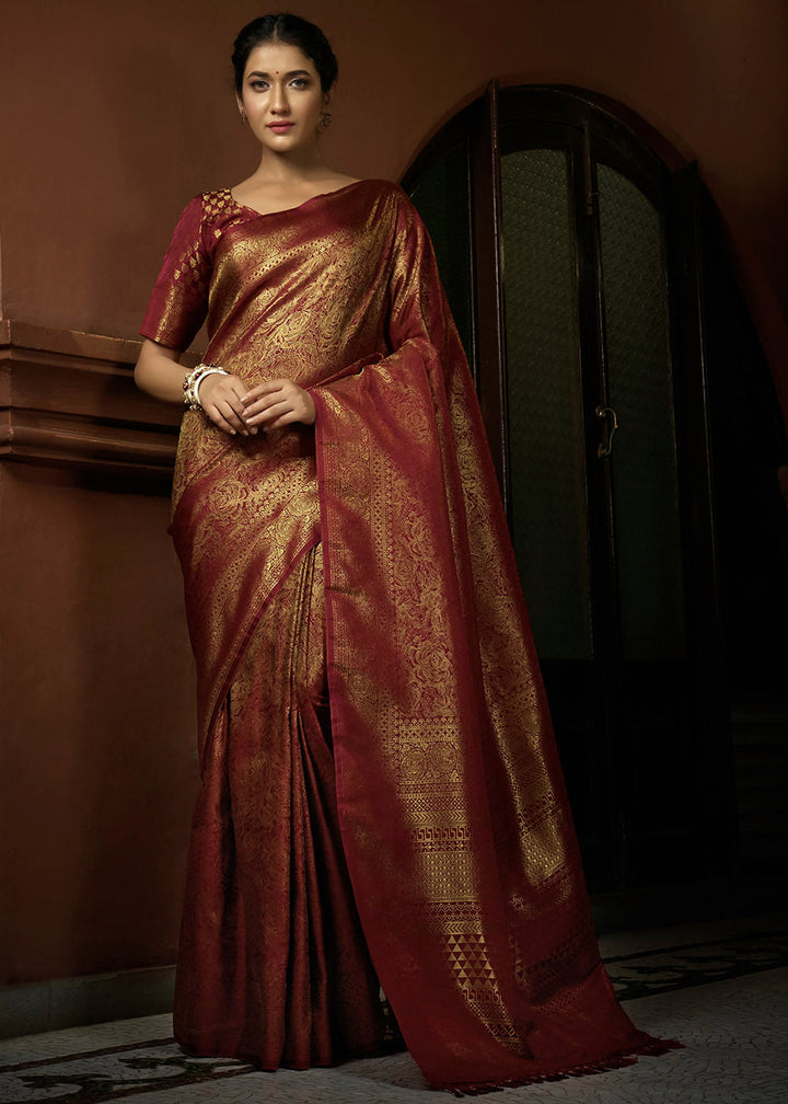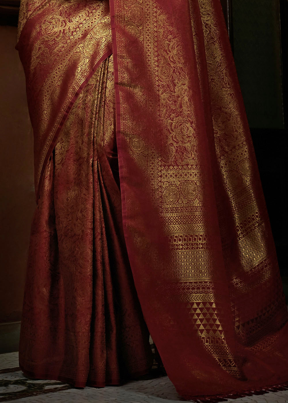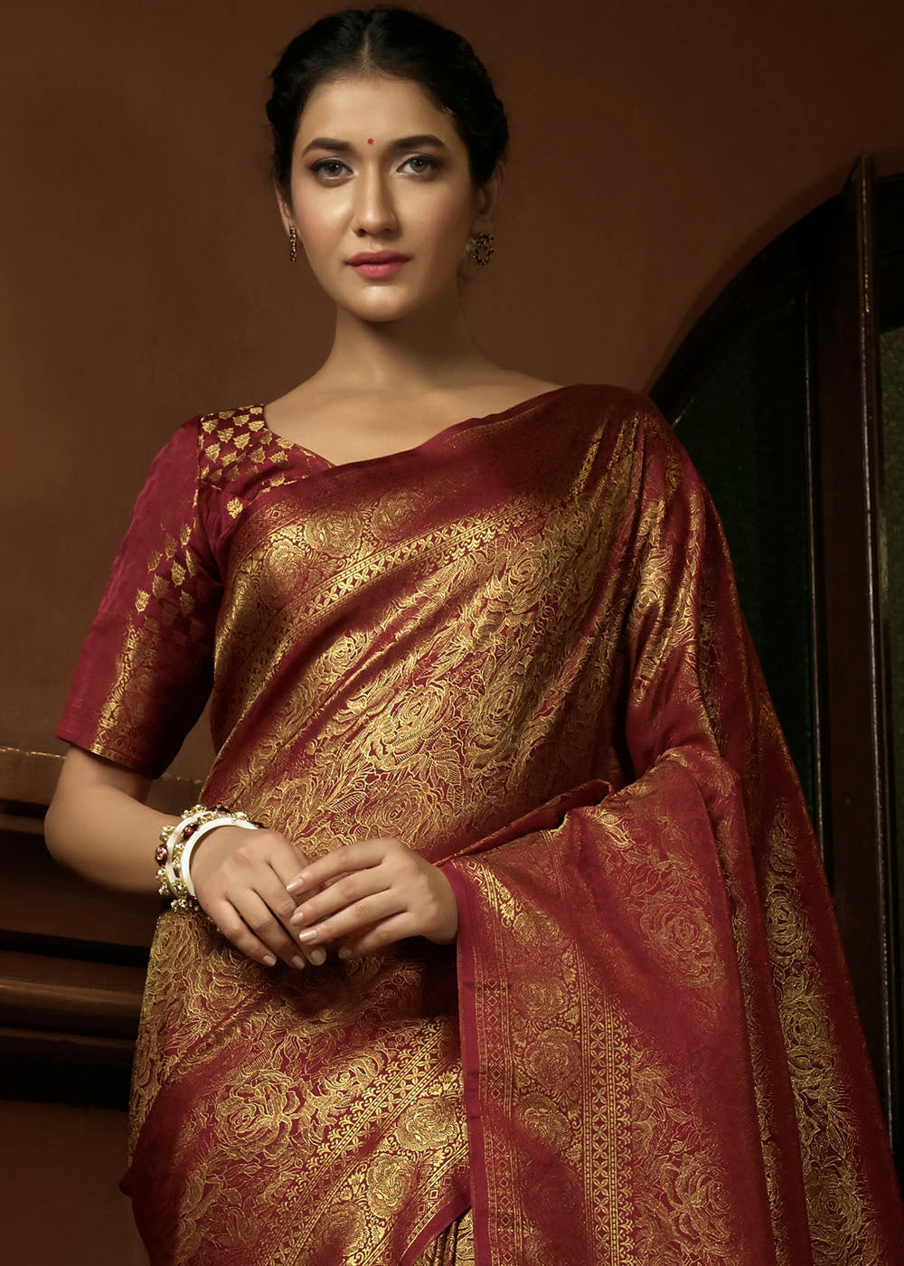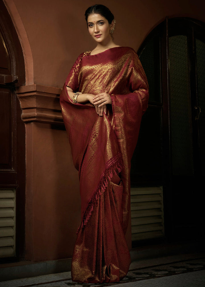 Maroon Red & Golden Blend Woven Kanjivaram Silk Saree
