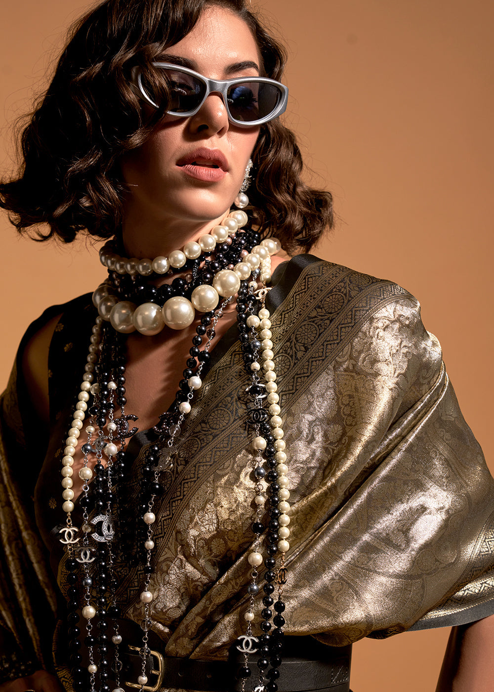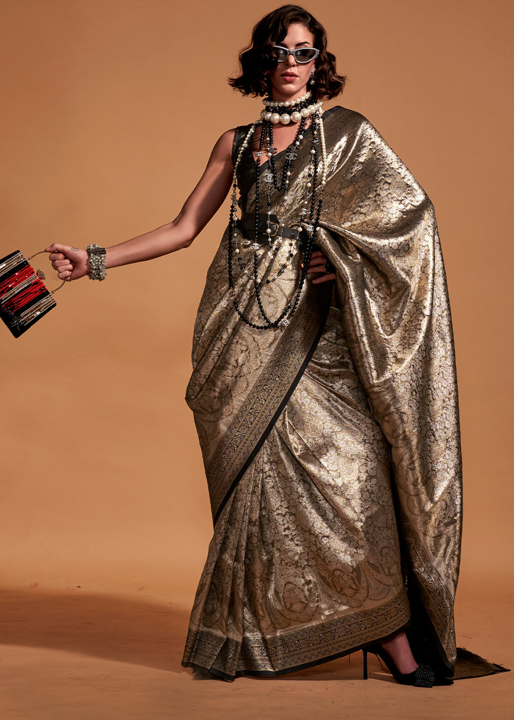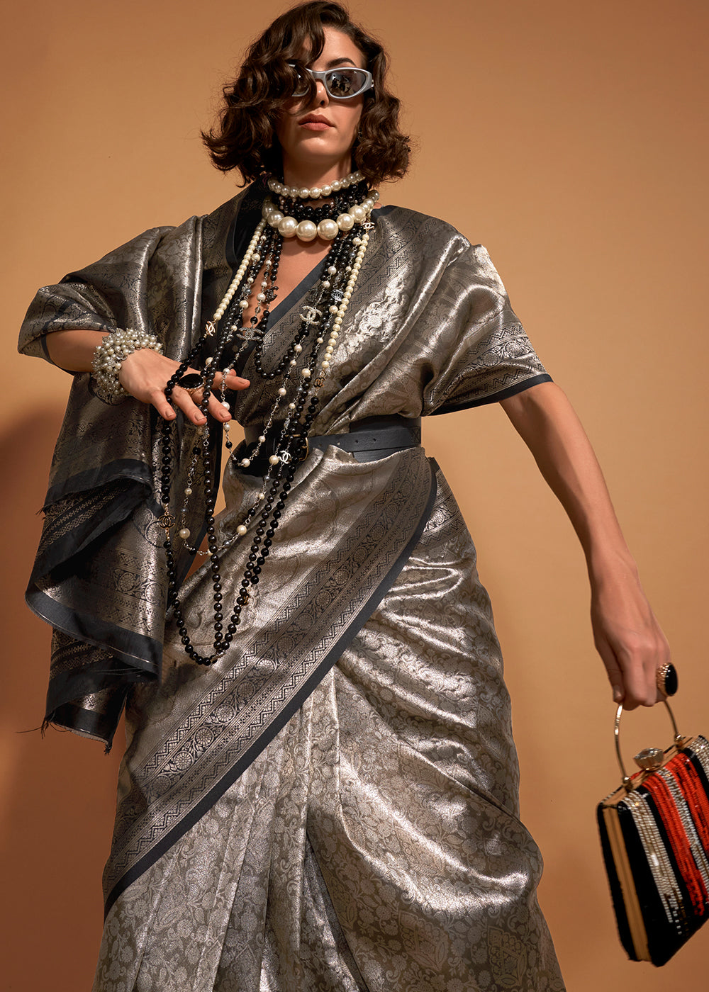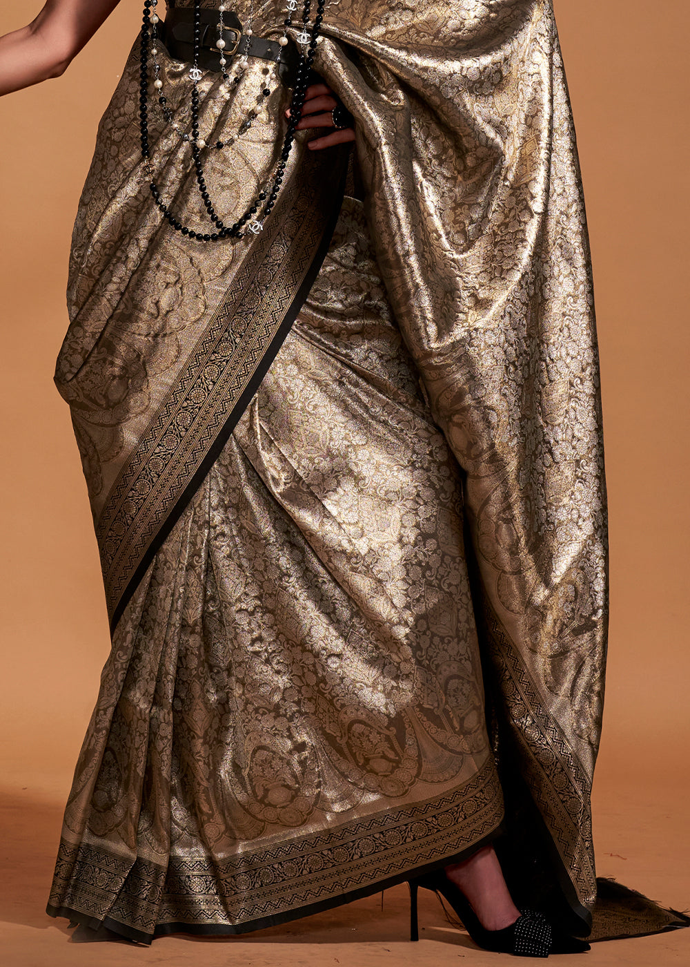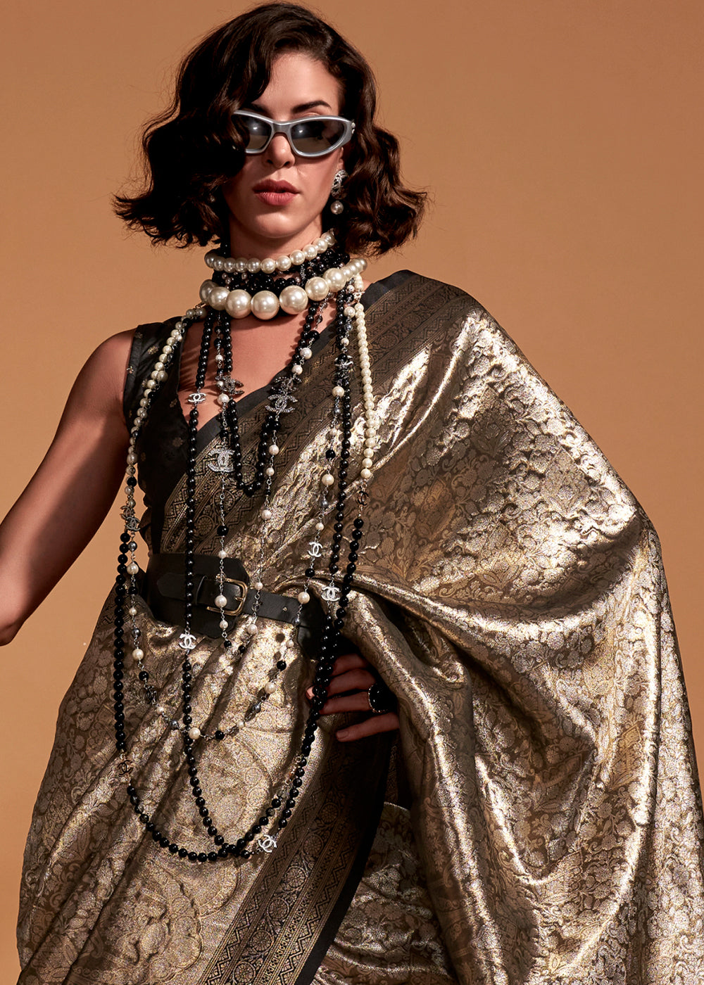 Metallic Black Handloom Woven Kanjivaram Silk Saree