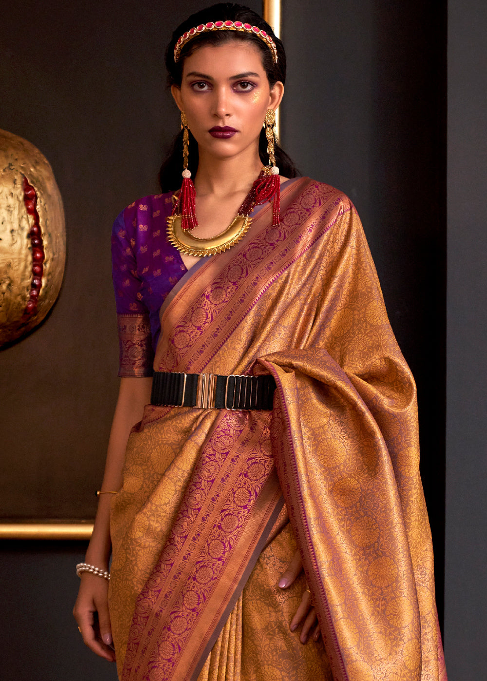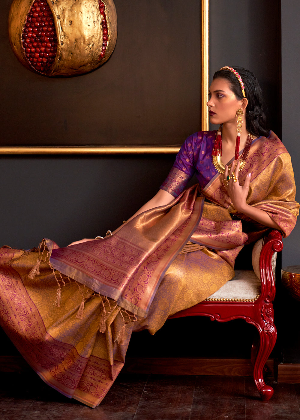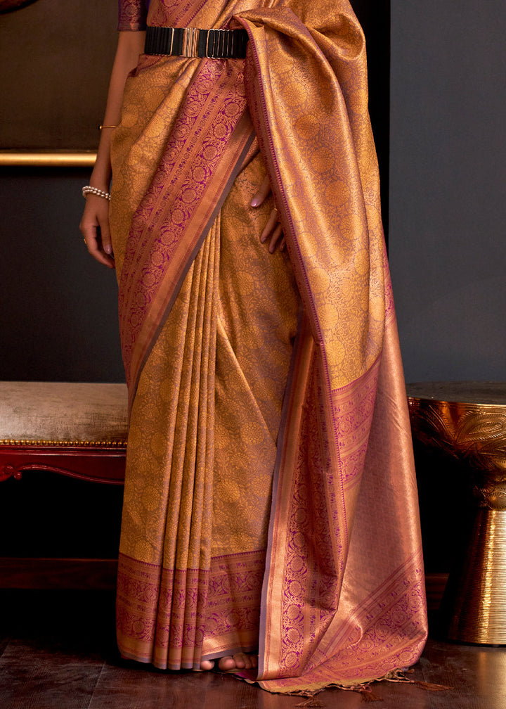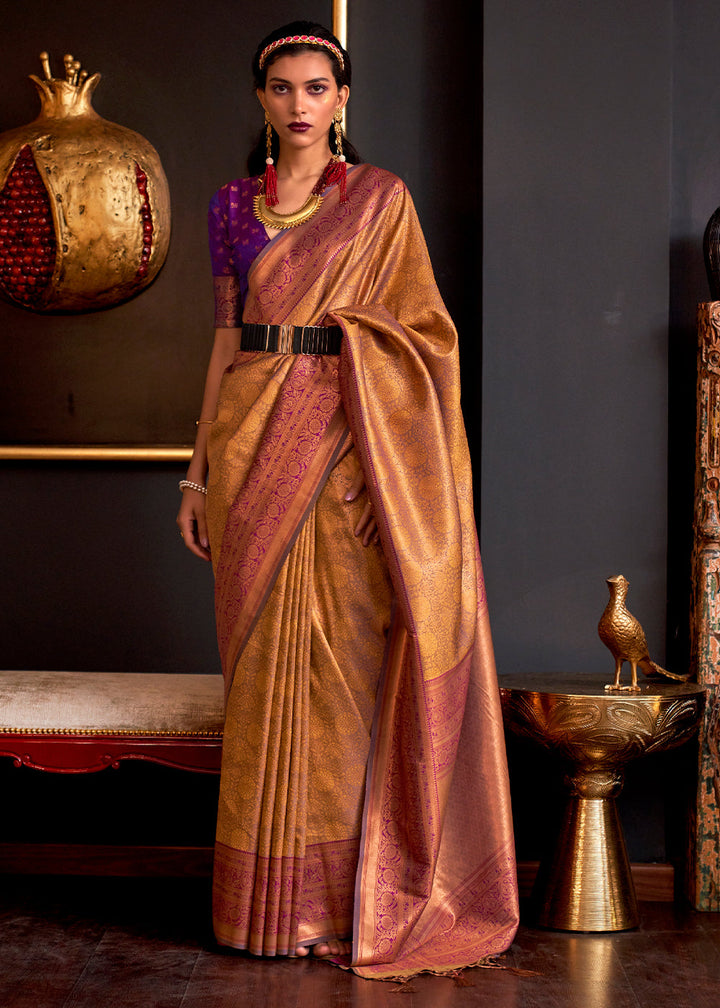 Mikado Yellow Handloom Woven Designer Silk Saree