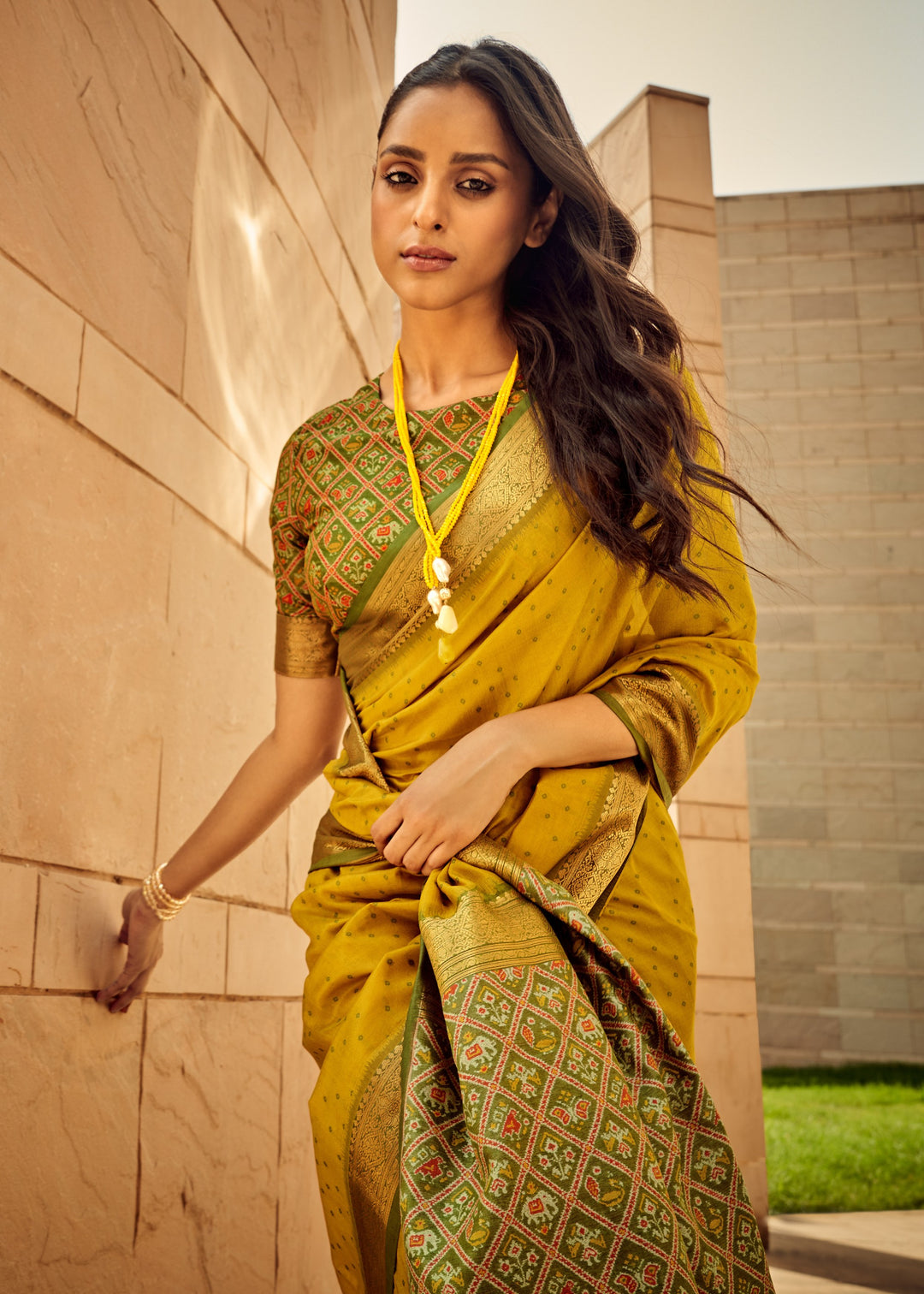 Embrace the timeless elegance of the Mustard Handloom Weaving Silk Saree, a piece that reflects the rich textile heritage of India.
