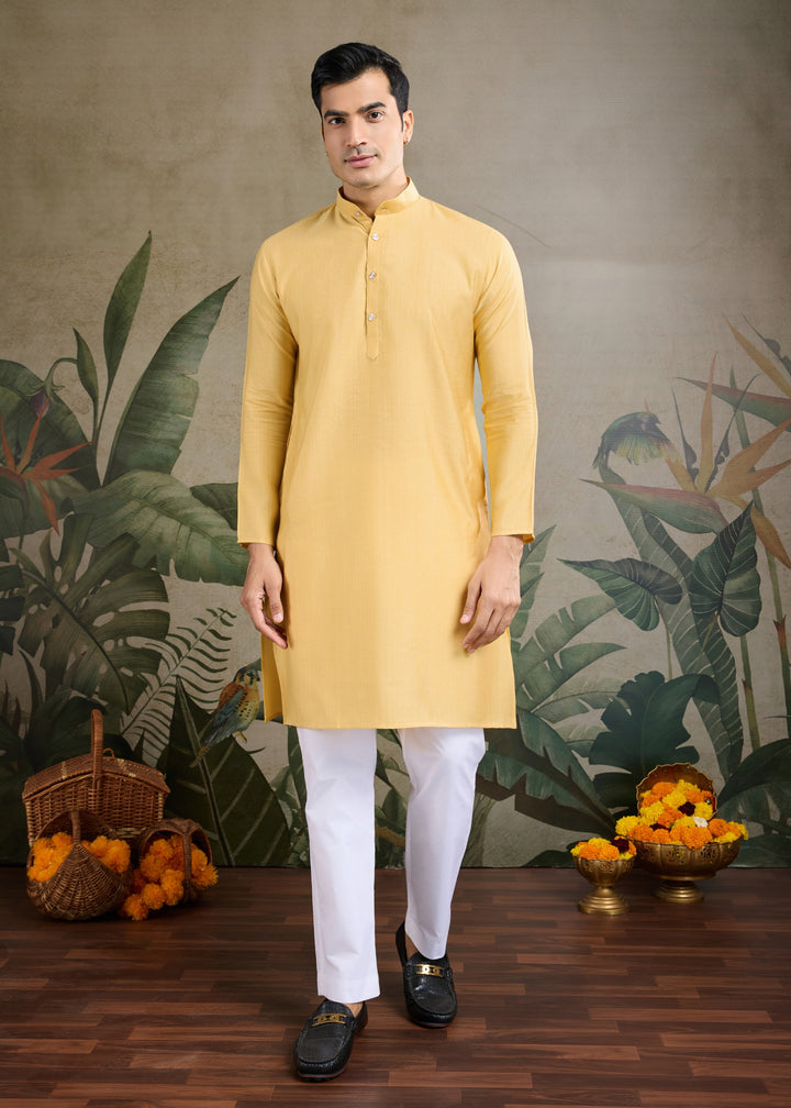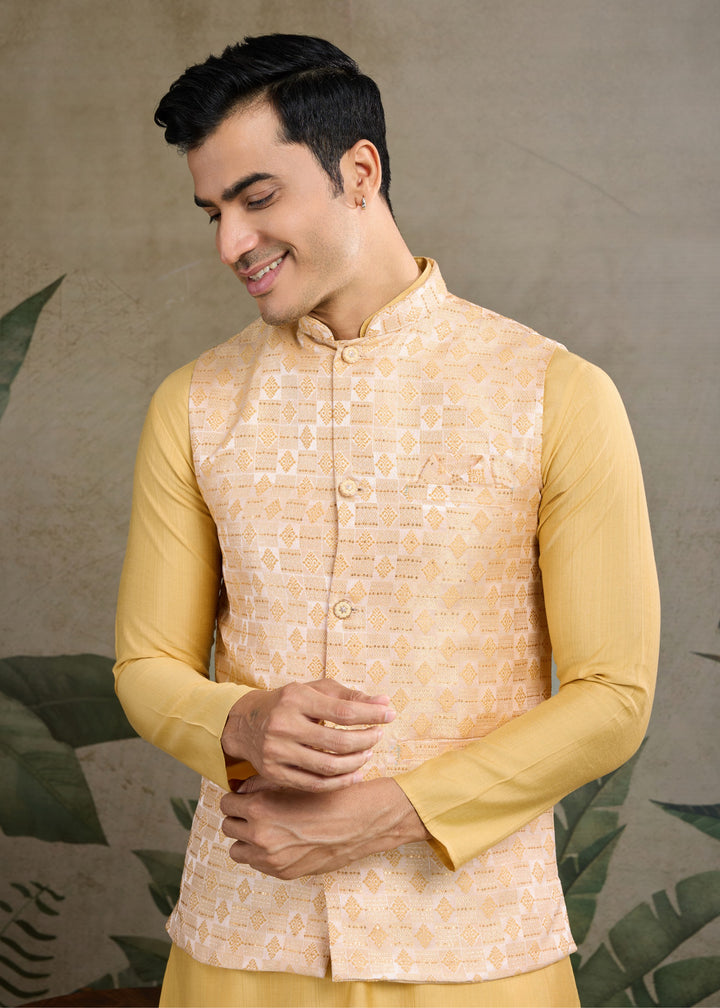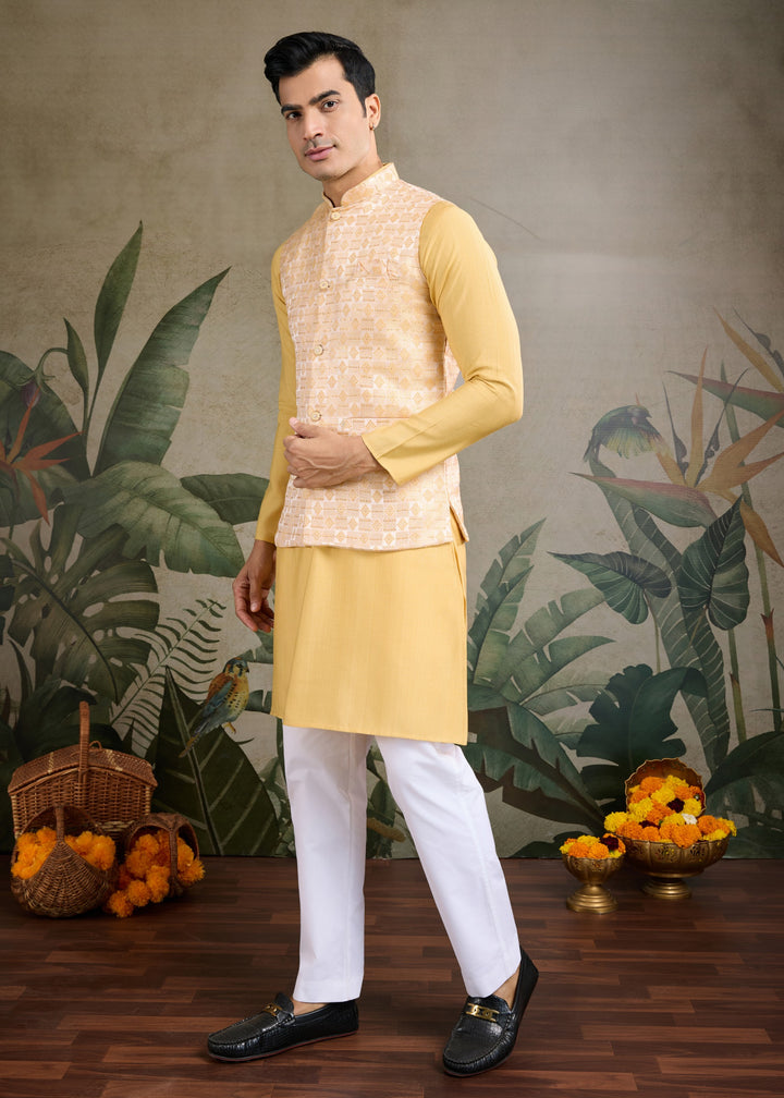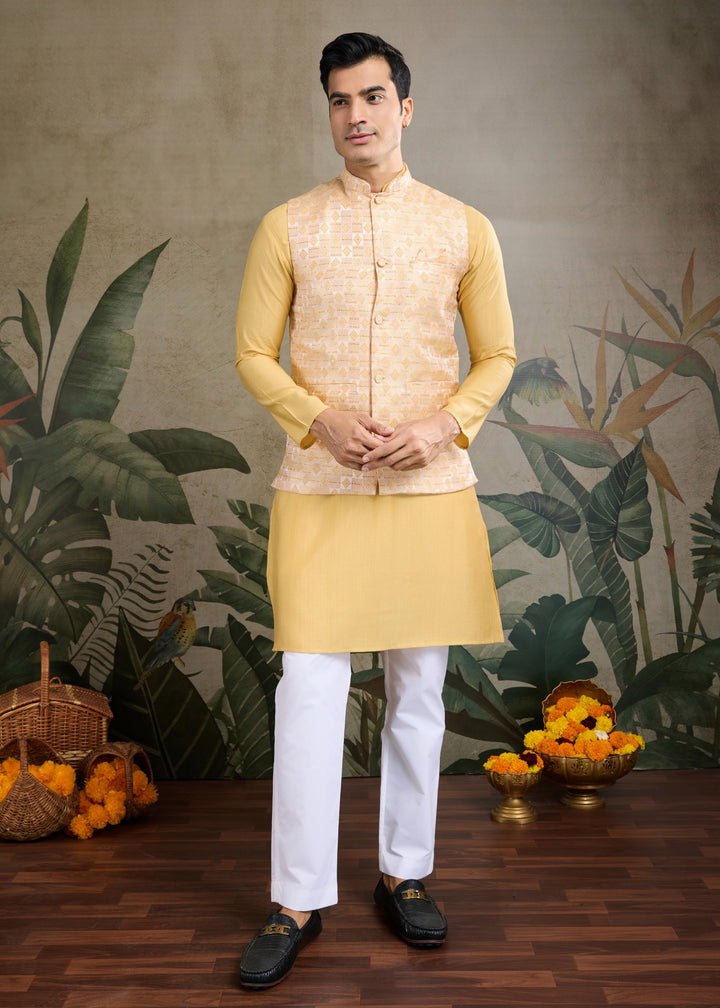 Yellow Mens Wear Koti Style with Kurta and Pajama
