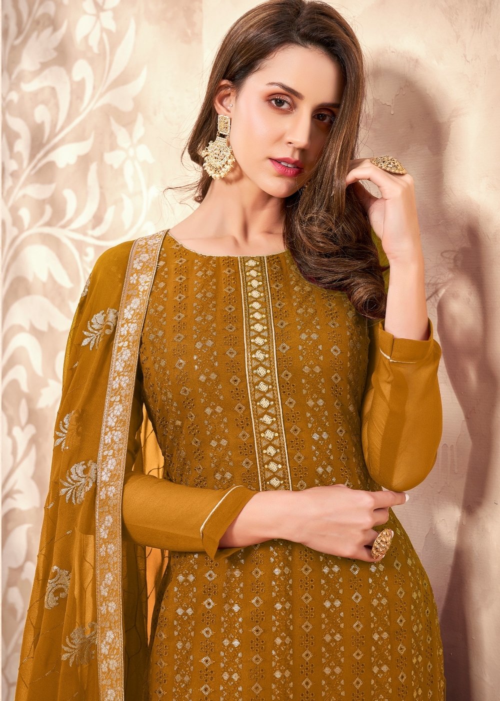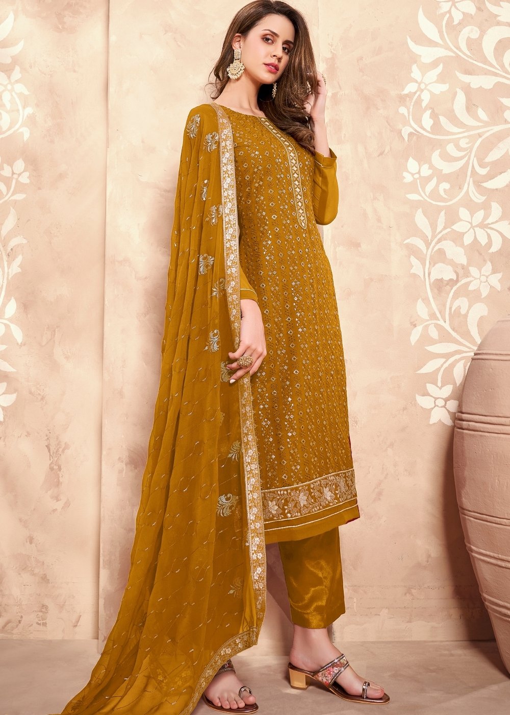 Mustard Yellow Georgette Salwar Suit with Thread & Sequence Embroidery work