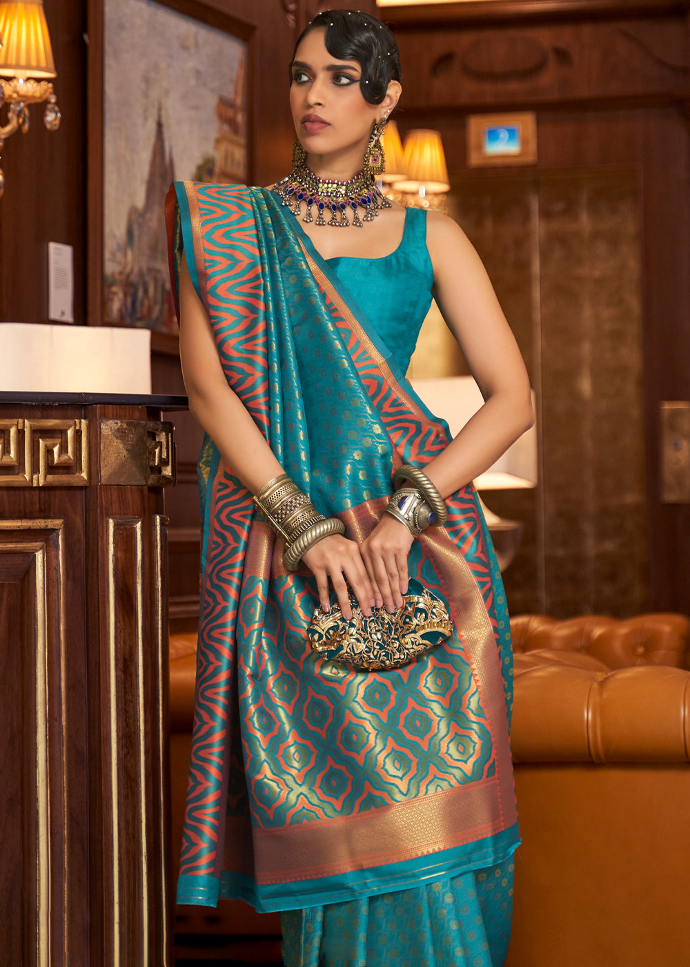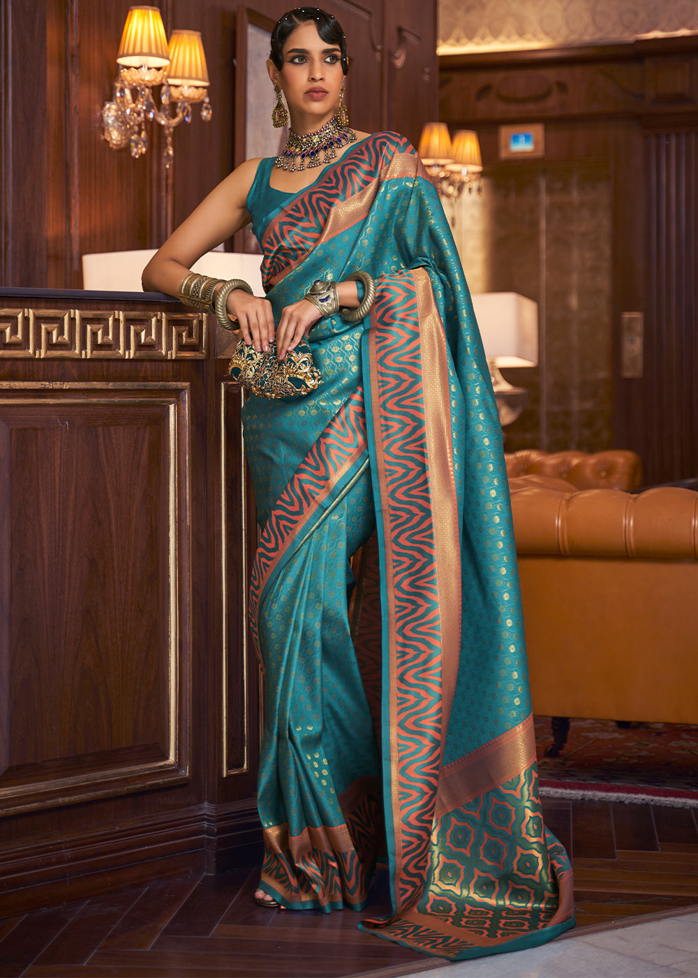 Olympic Blue Handloom Woven Banarasi Silk Saree