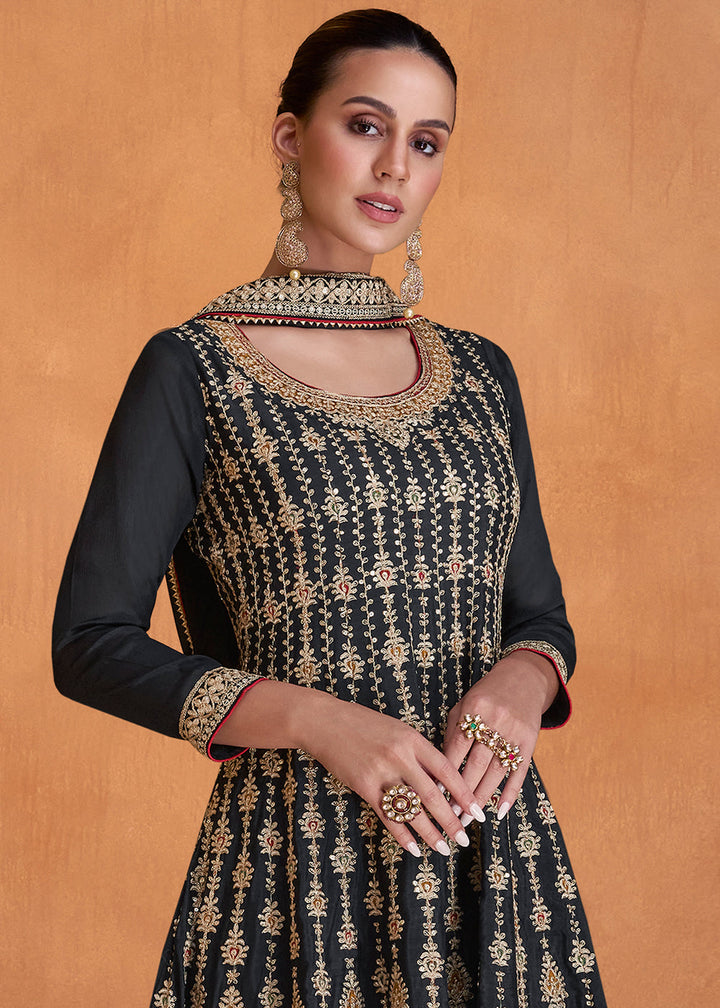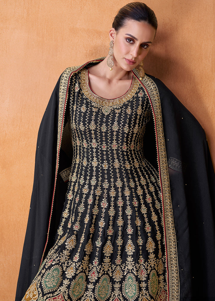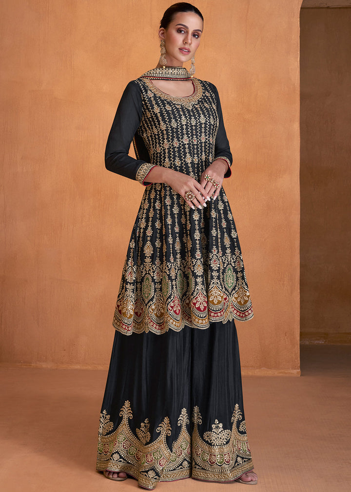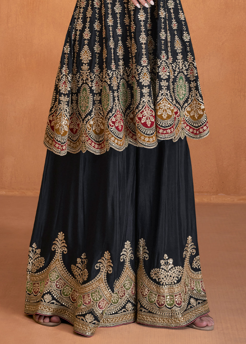 Onyx Black Designer Chinnon Plazzo Suit with Sequins work