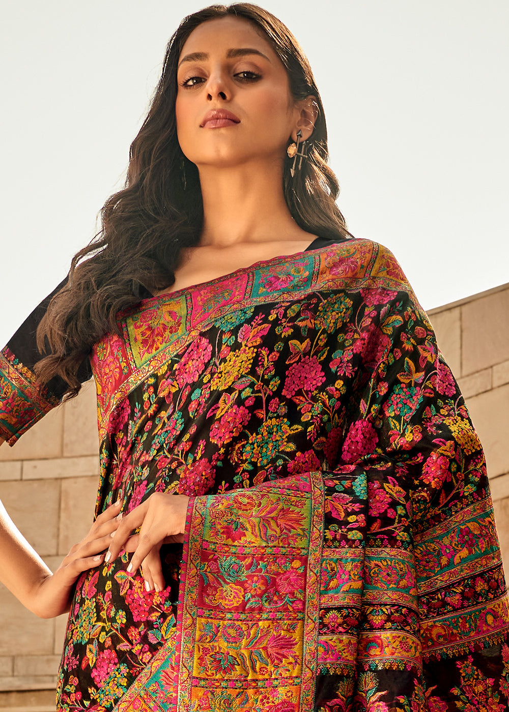 Onyx Black Woven Kashmiri Jamawar Silk Saree