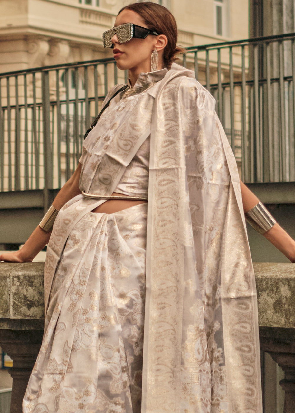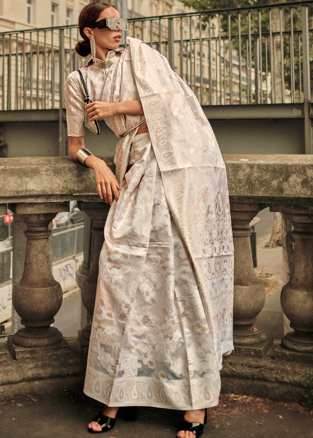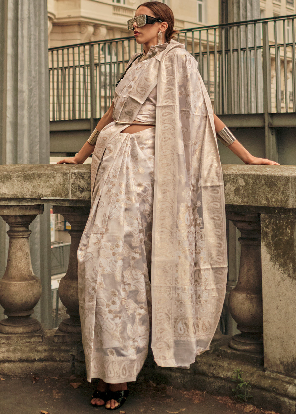 Parchment White Zari Handloom Woven Organza Silk Saree