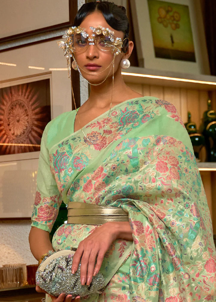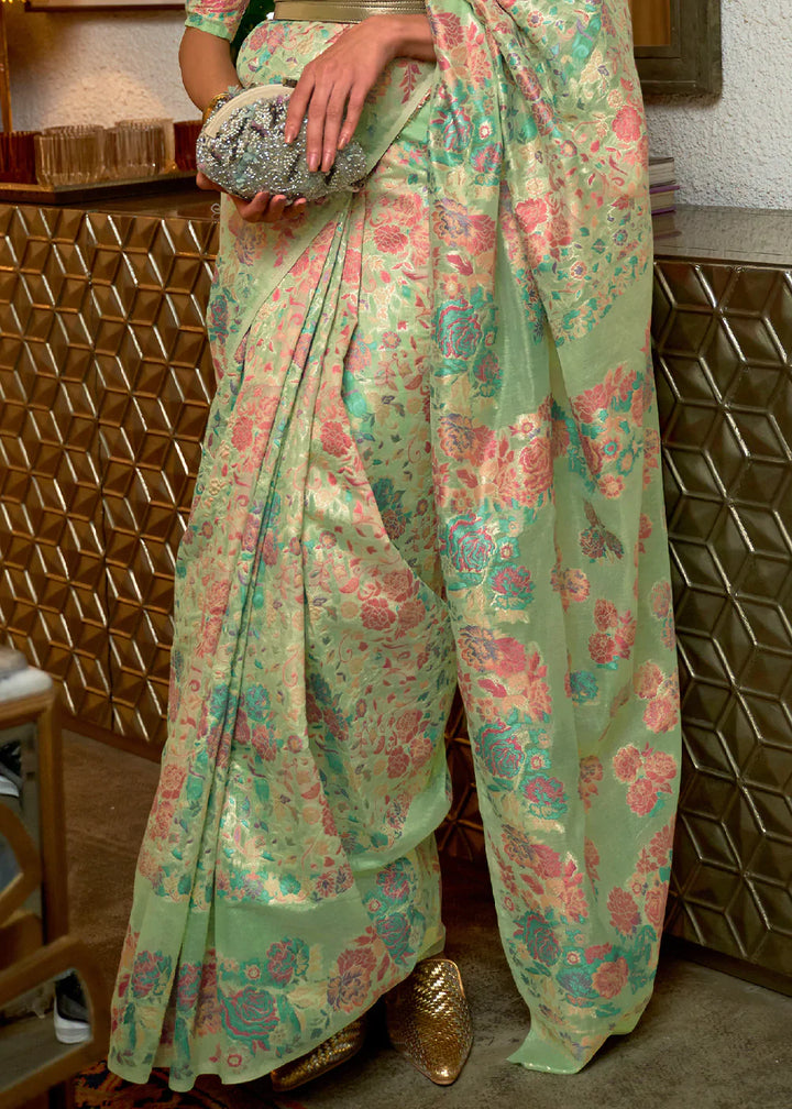 Pastel Green Kashmiri Handloom Weaving Silk Saree