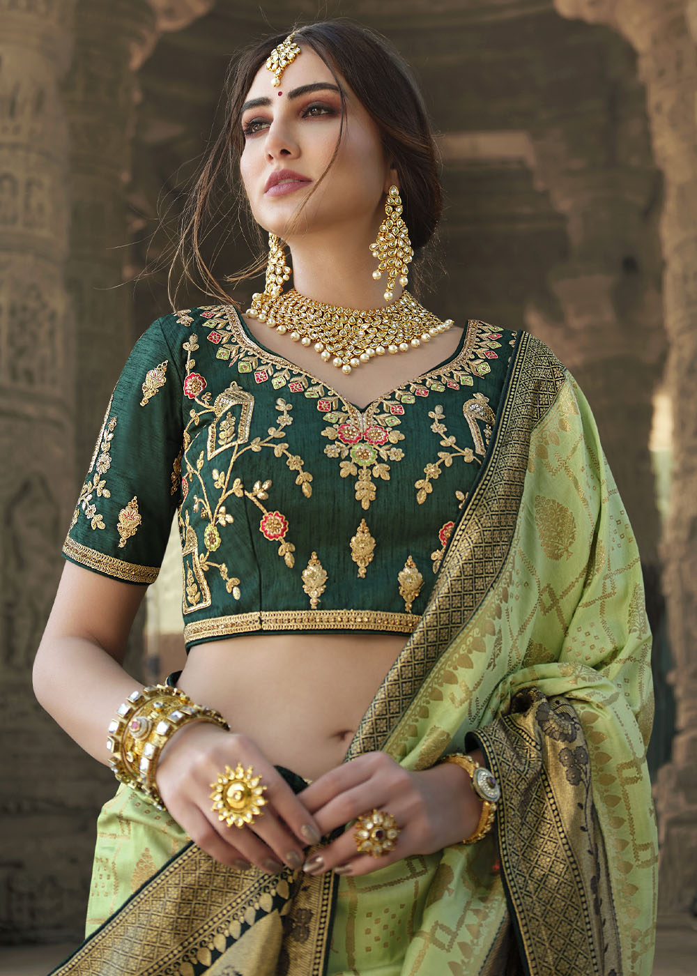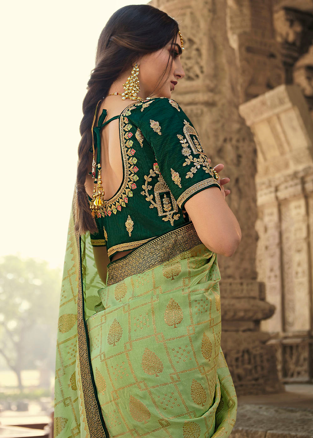 Pastel Green Woven Banarasi Silk Saree with Embroidered Blouse