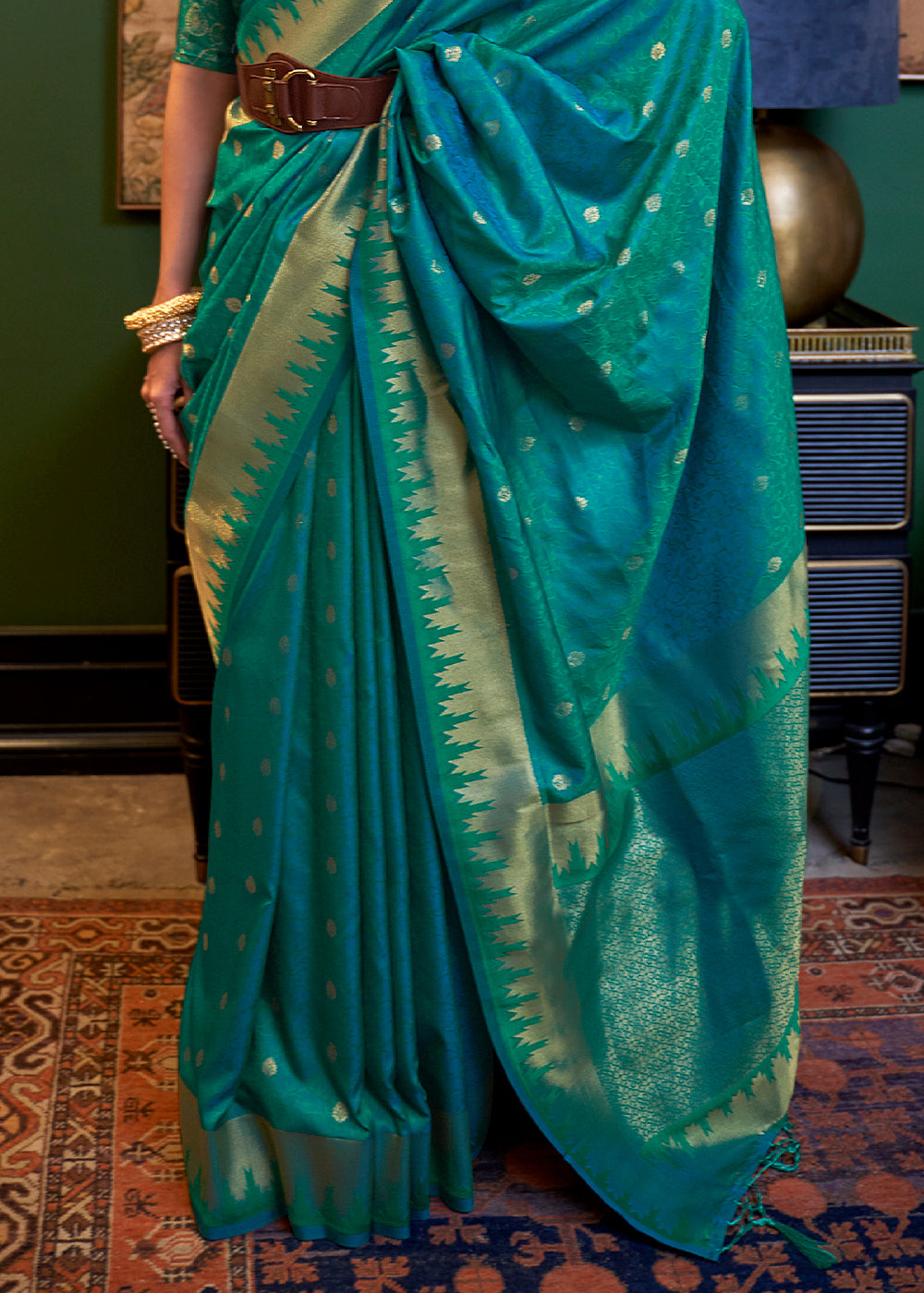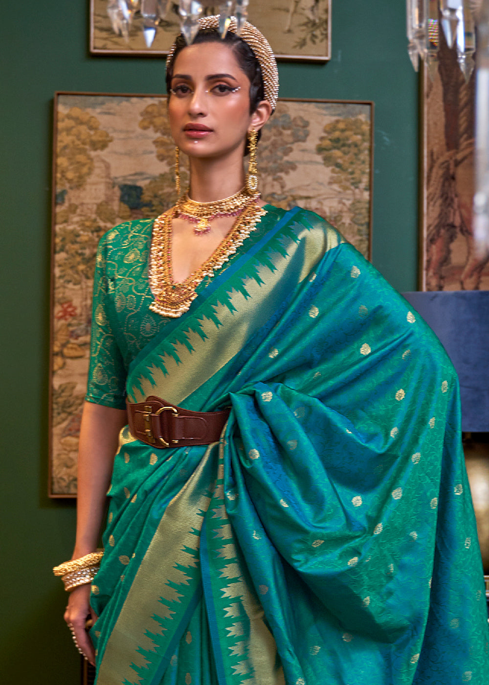 Peacock Blue Handloom Woven Banarasi Silk Saree