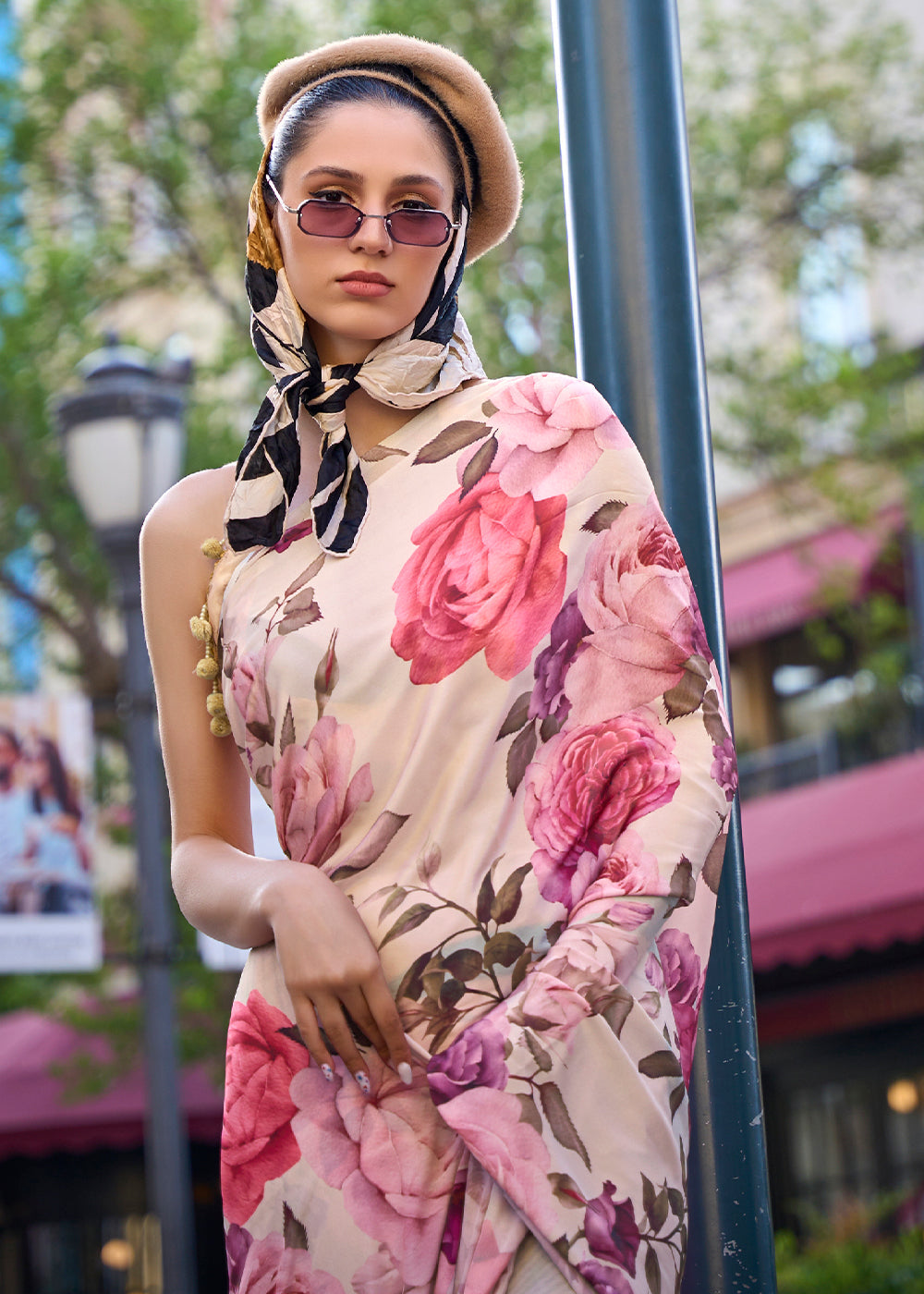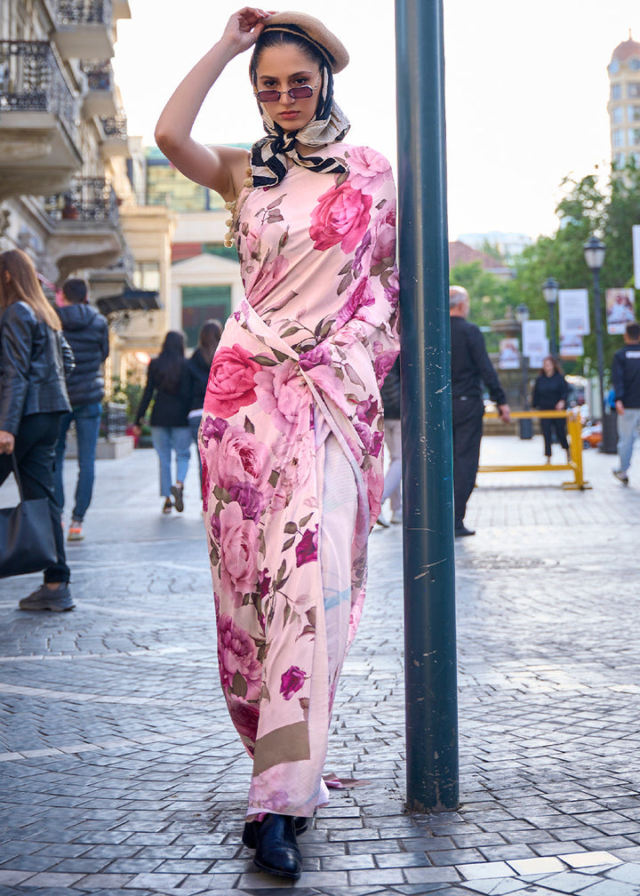 Pearl White Digital Printed Crepe Silk Saree