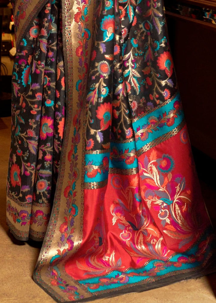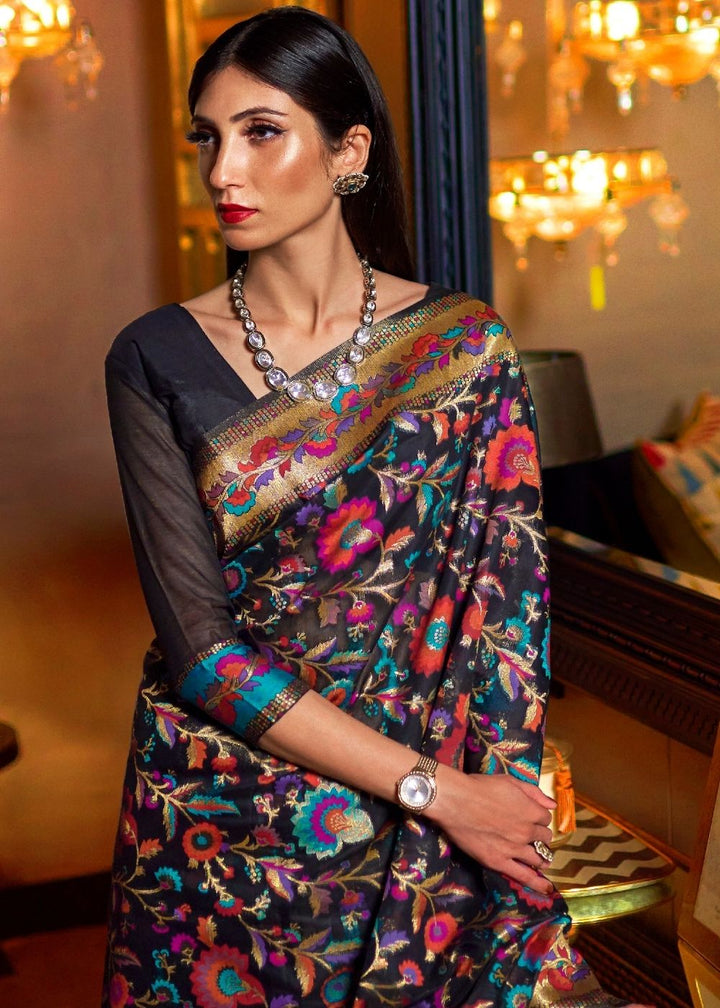 Pebble Black Banarasi Jamawar Woven Silk Saree