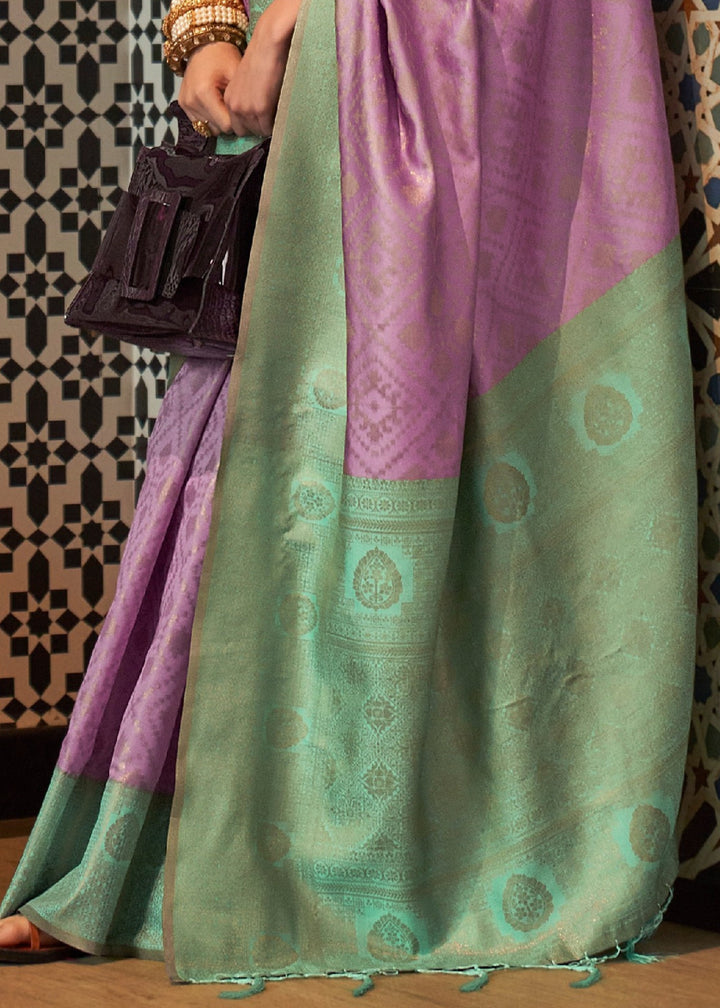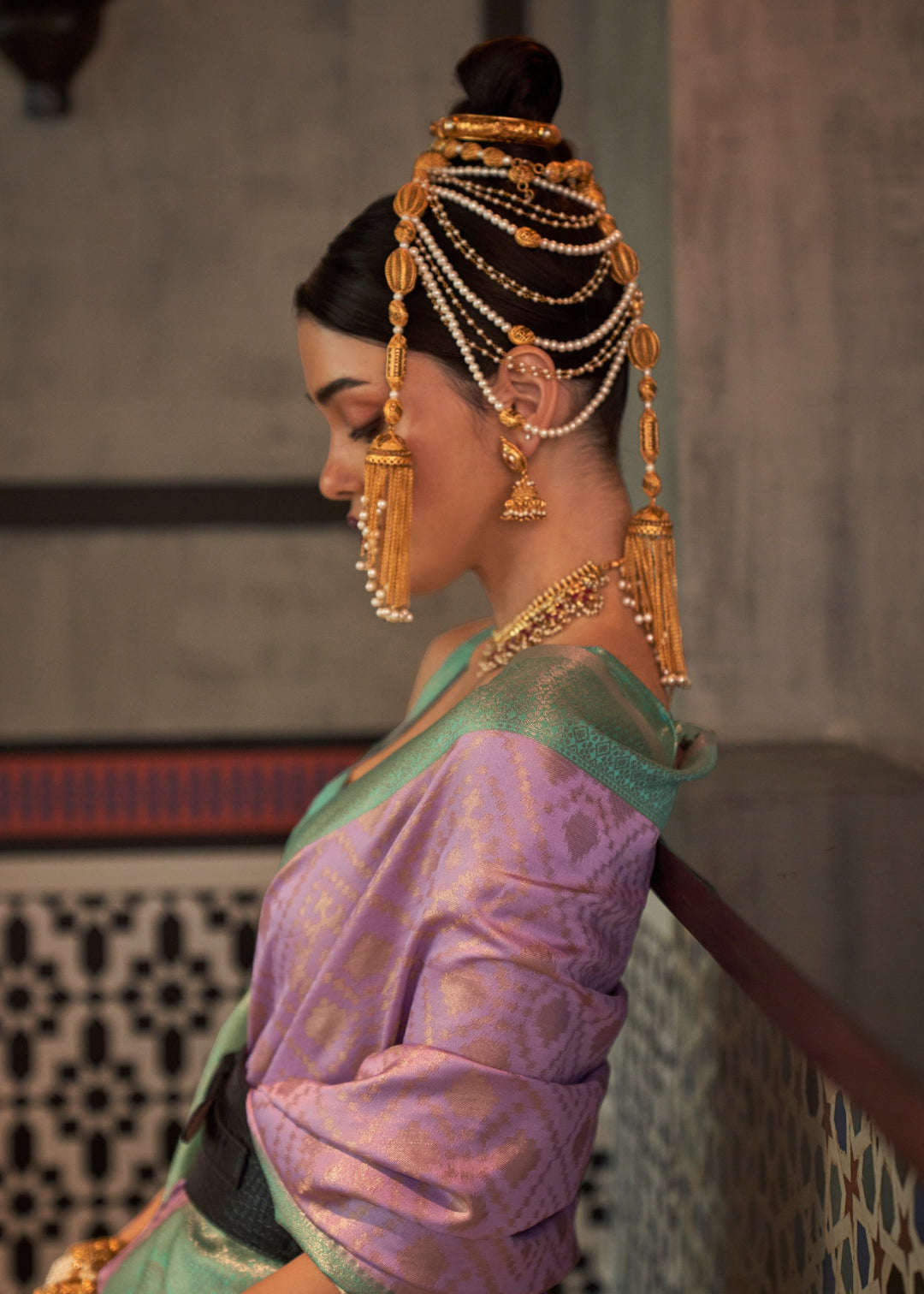 Periwinkle and Fern Silk Zari Base Chaap Handloom Weaving Saree