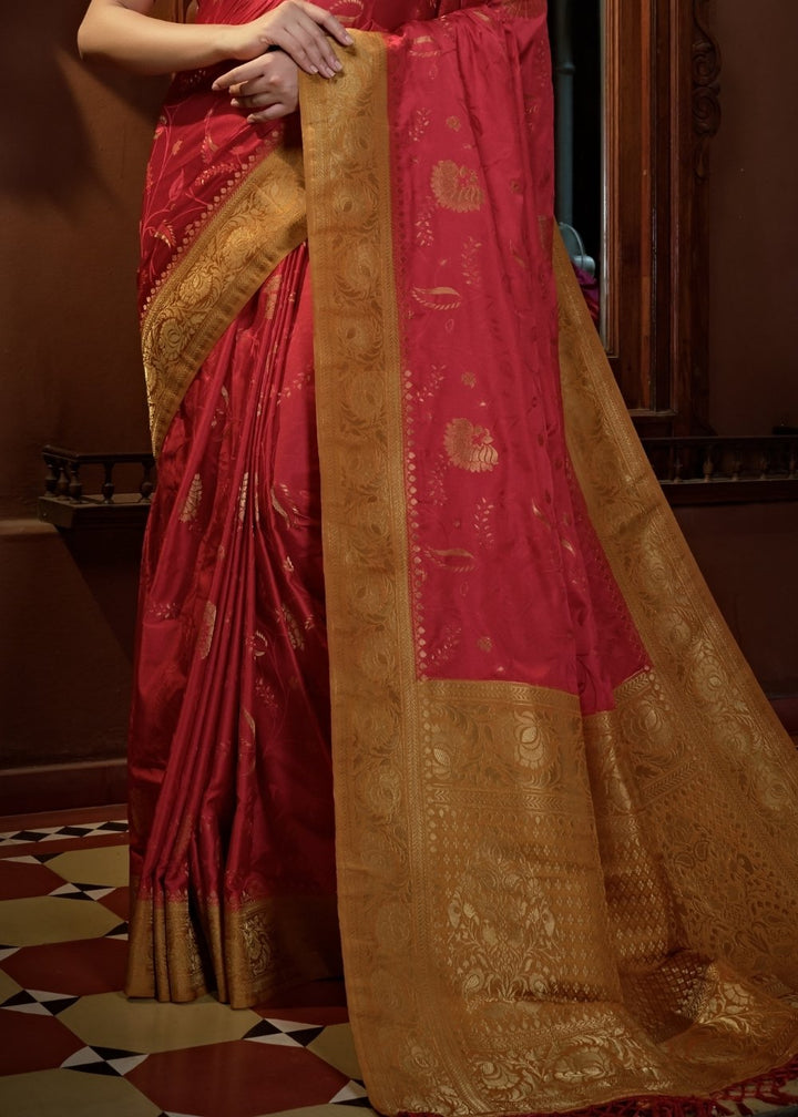 Persian Red Designer Satin Silk Saree