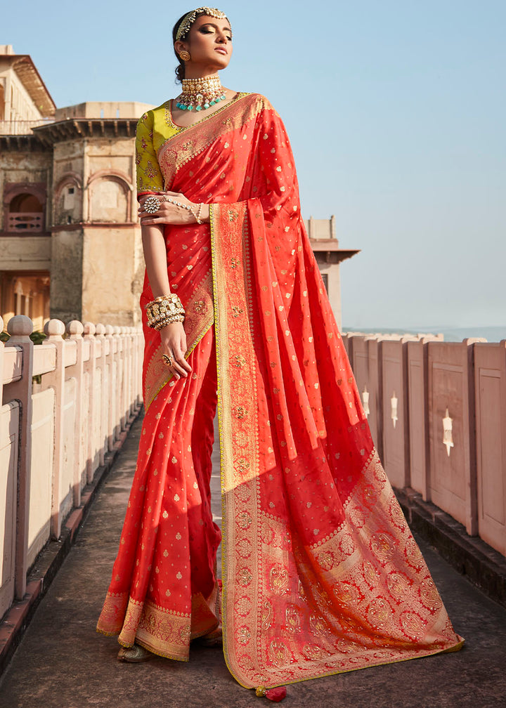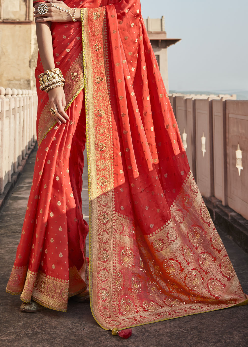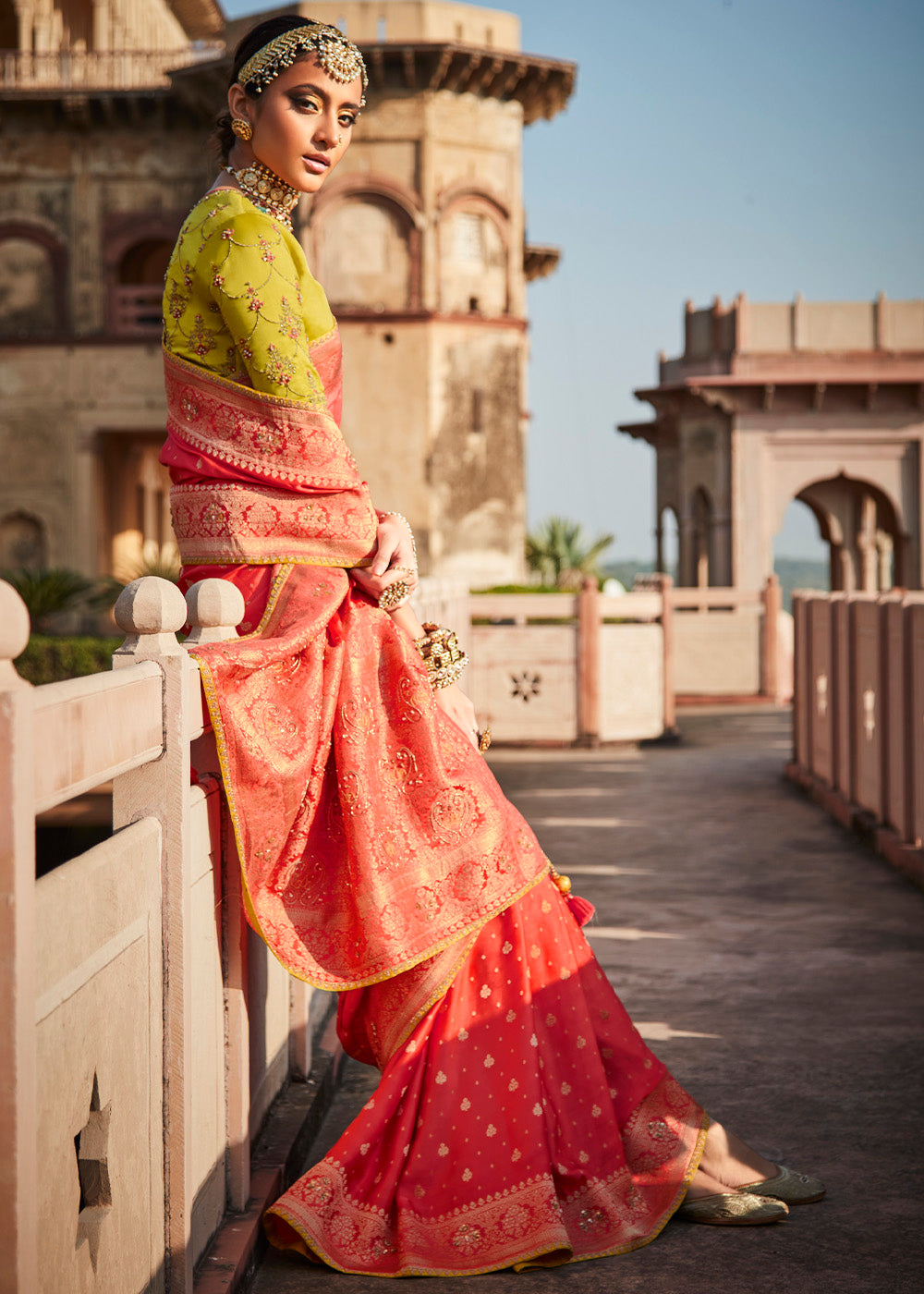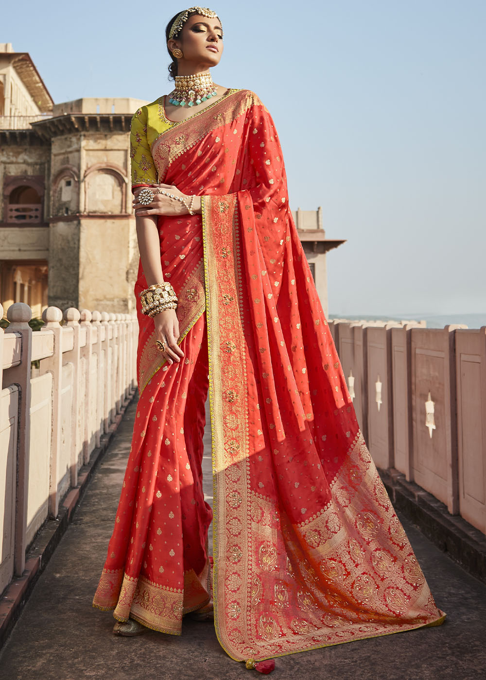 Persian Red Woven Banarasi Silk Saree with Embroidered Blouse