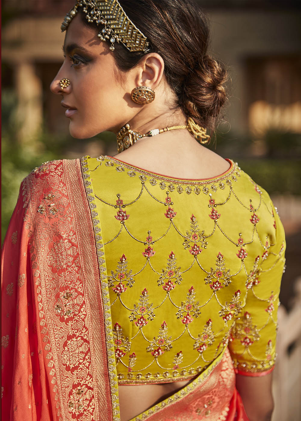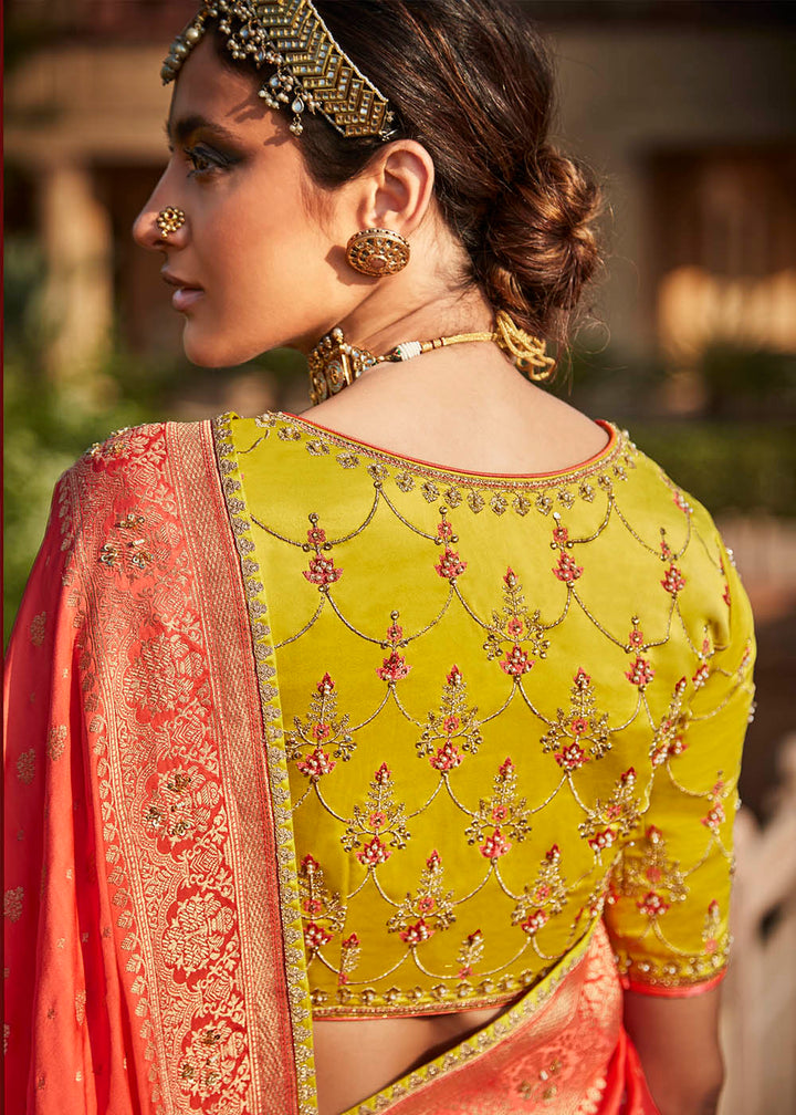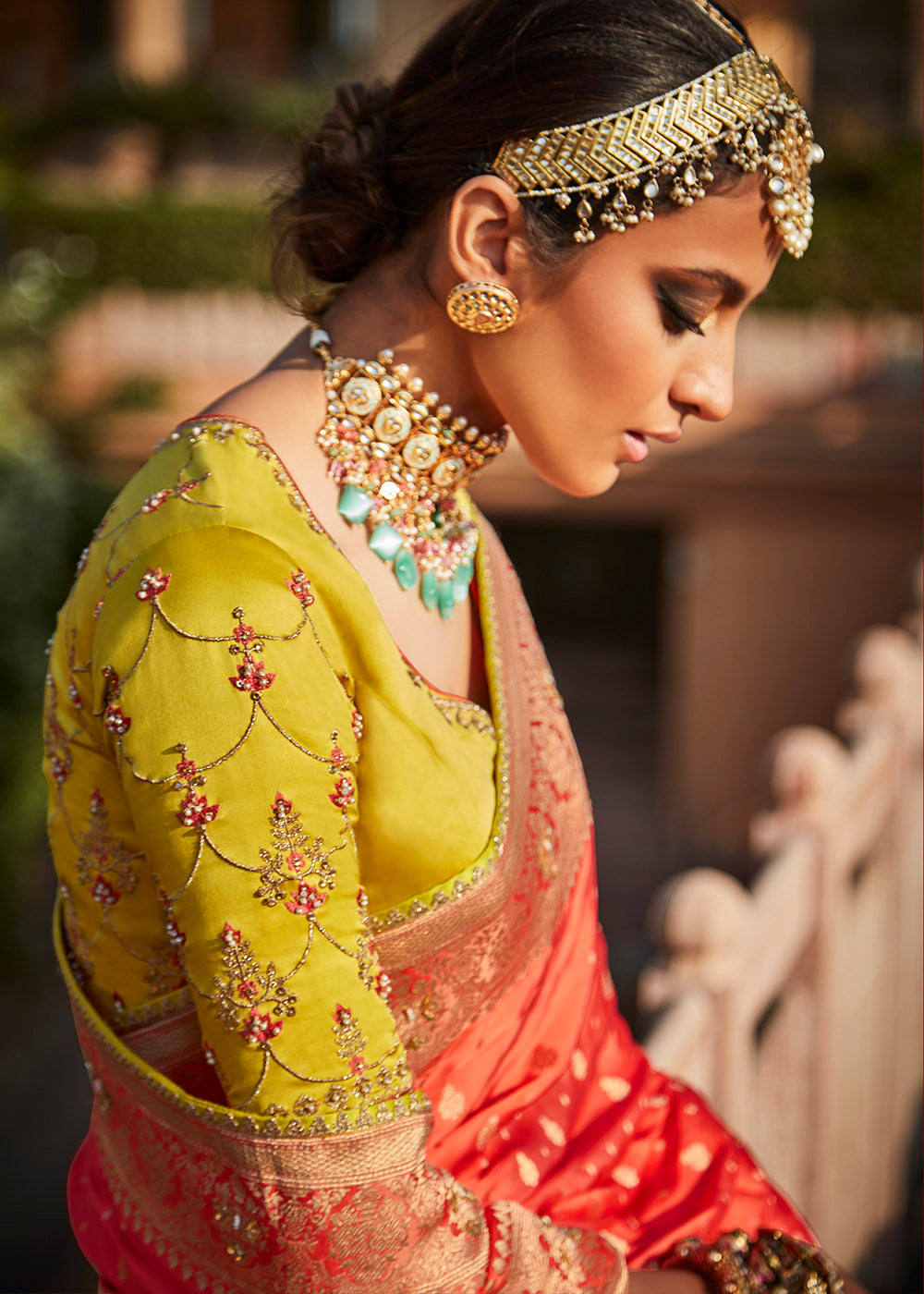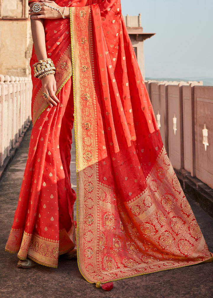 Persian Red Woven Banarasi Silk Saree with Embroidered Blouse